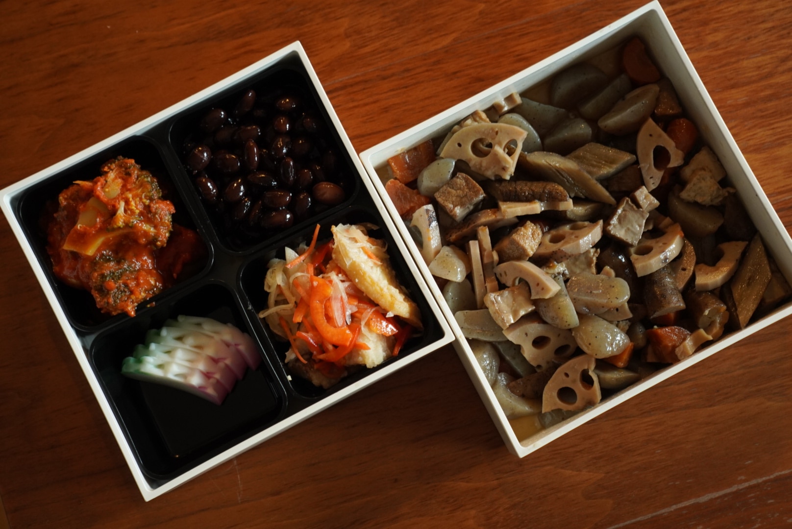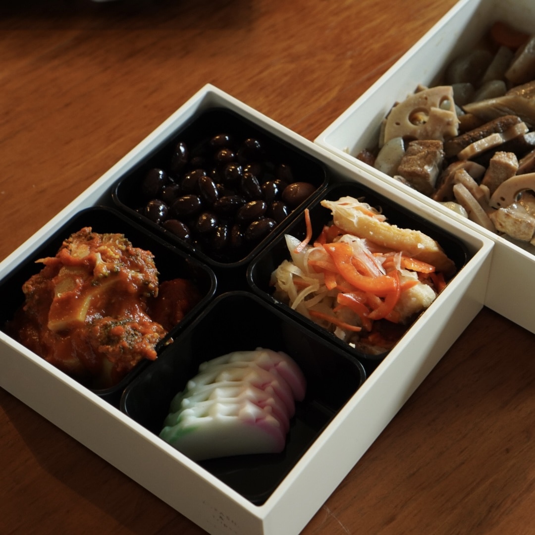 せっかくだし!ということでお節を詰めることにしたのですが、お正月らしい雰囲気になりました。
