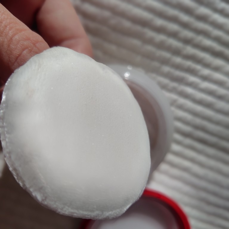 パウダーを取ってみました…。えっ?ついてる??ちょっとキラッ、キラッと見えるような。すごい薄づきなんです。