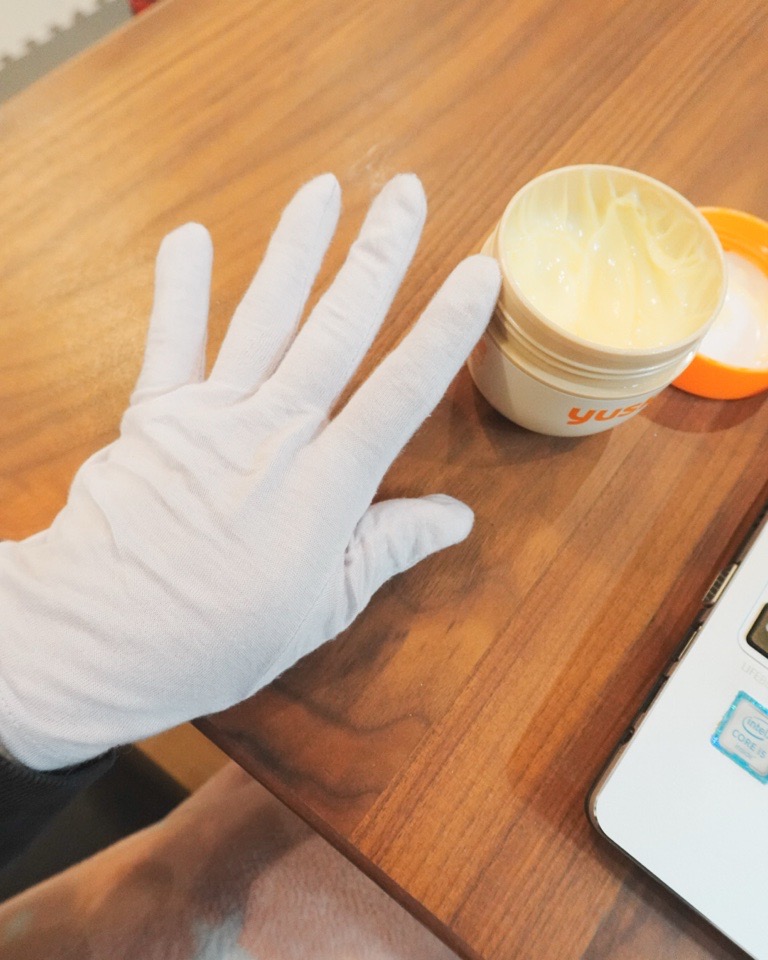 それは、クリームを塗ったあとに手袋をする、ということ。