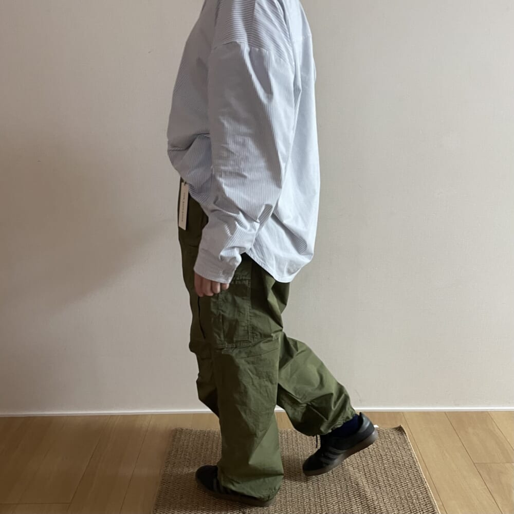裾がしぼれるようになっており、丈感の調整も可能です。生地感も品があり、軍もののデザインの様ですが、きれいめに着こなすことができそうです!