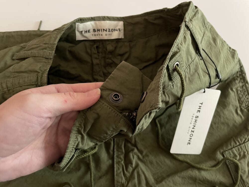 サイズは34。ボタン+紐のデザインで、おおよそのサイズ調整は可能になっています。