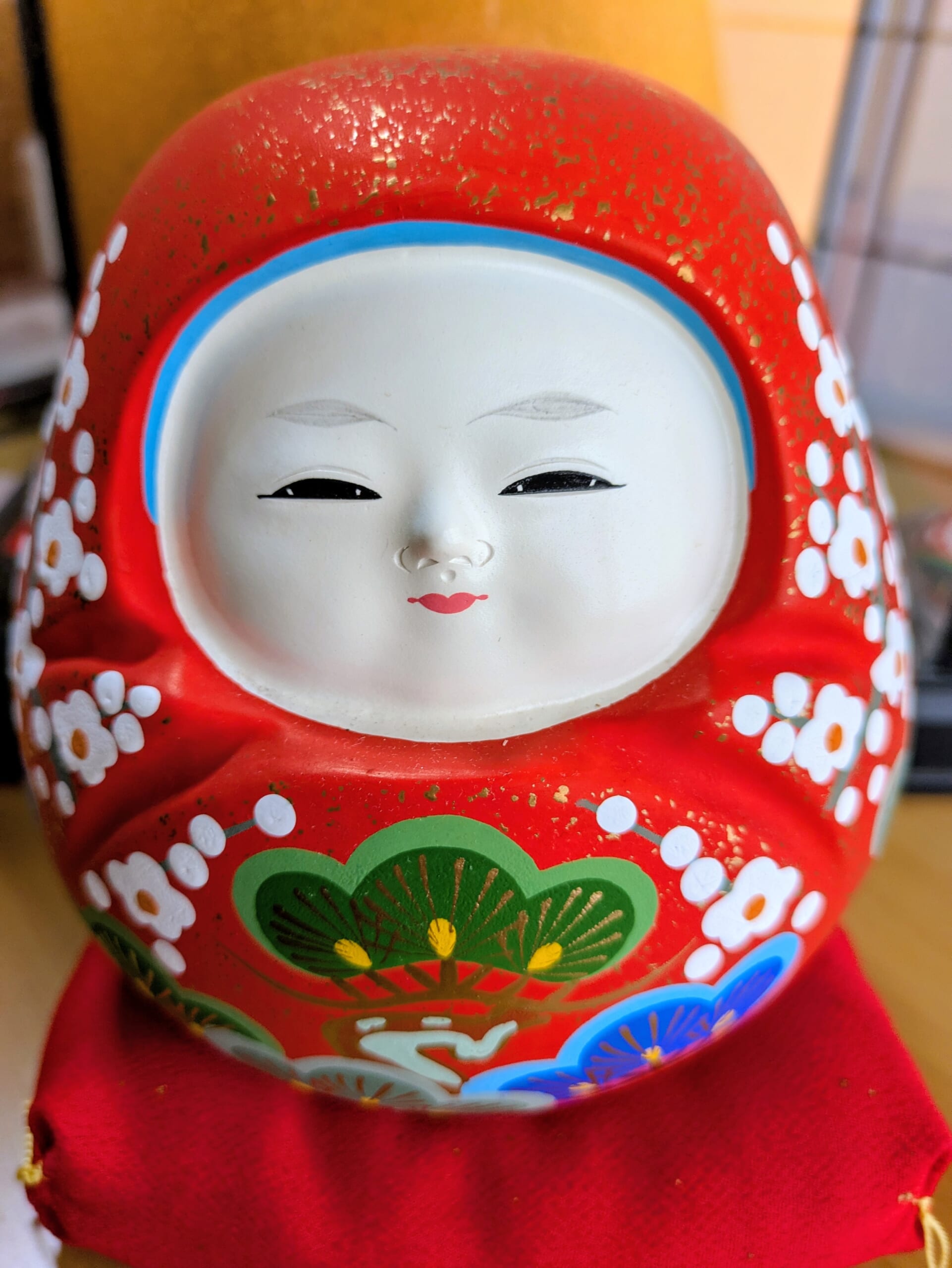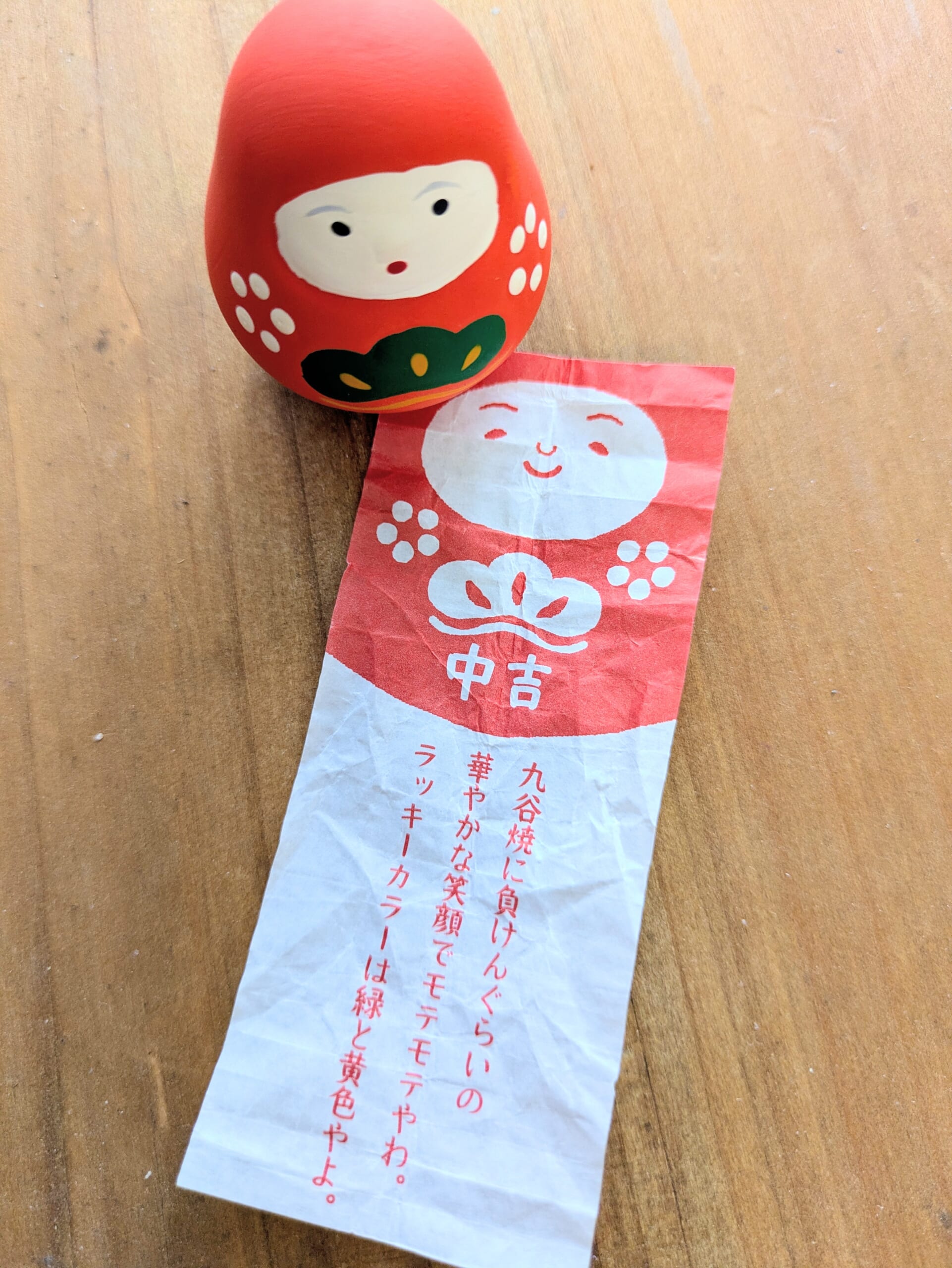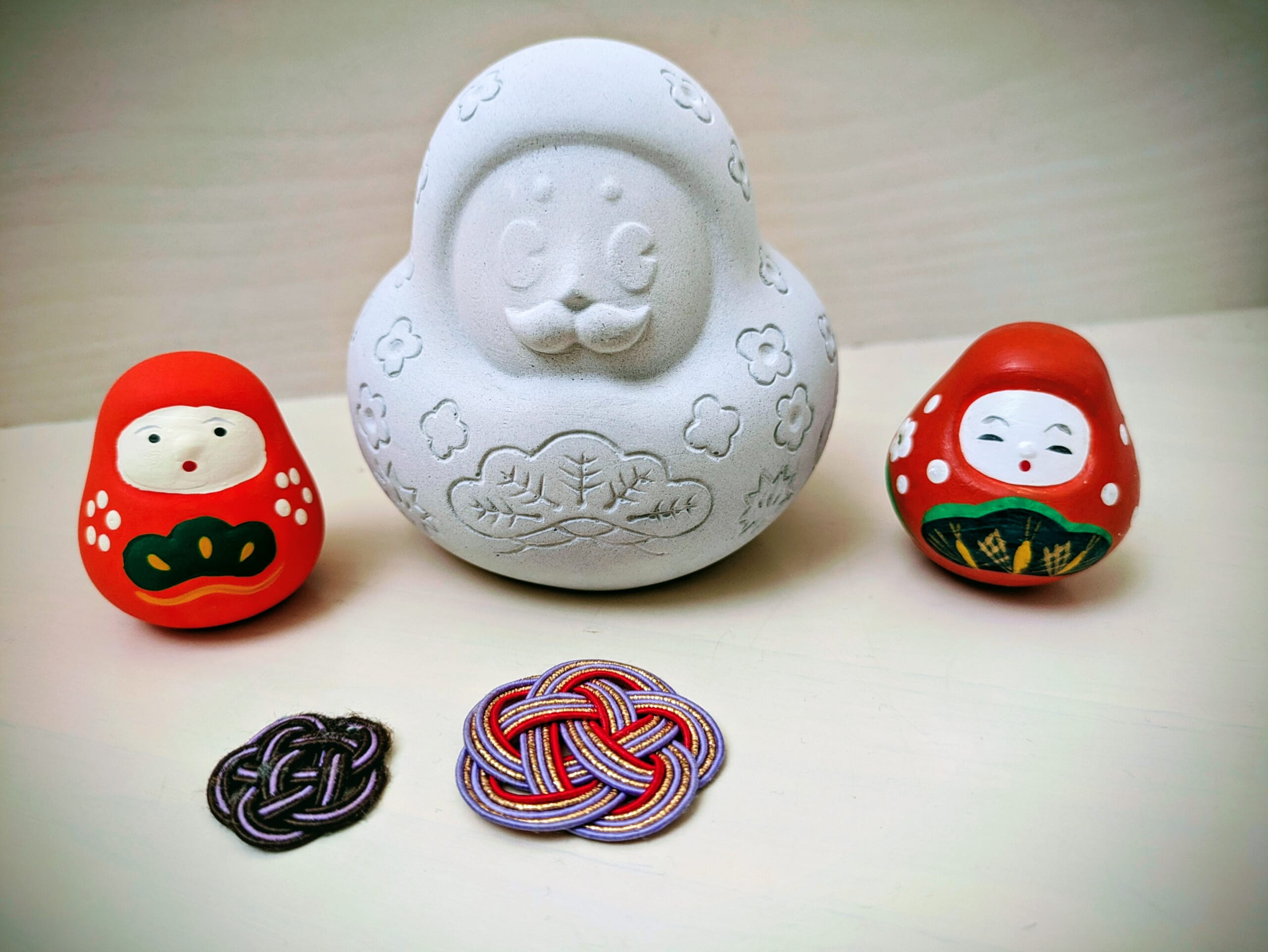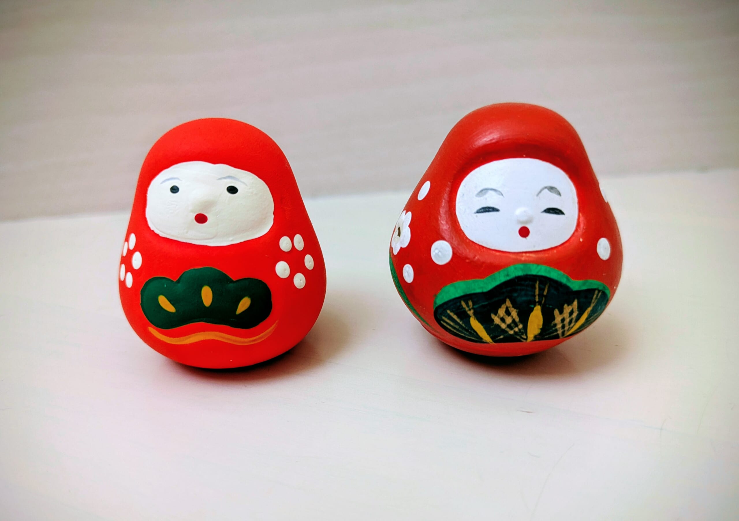 左が中川政七商店で購入した“姫だるまみくじ”、右は我が家に元々おります小さな“姫だるま“です