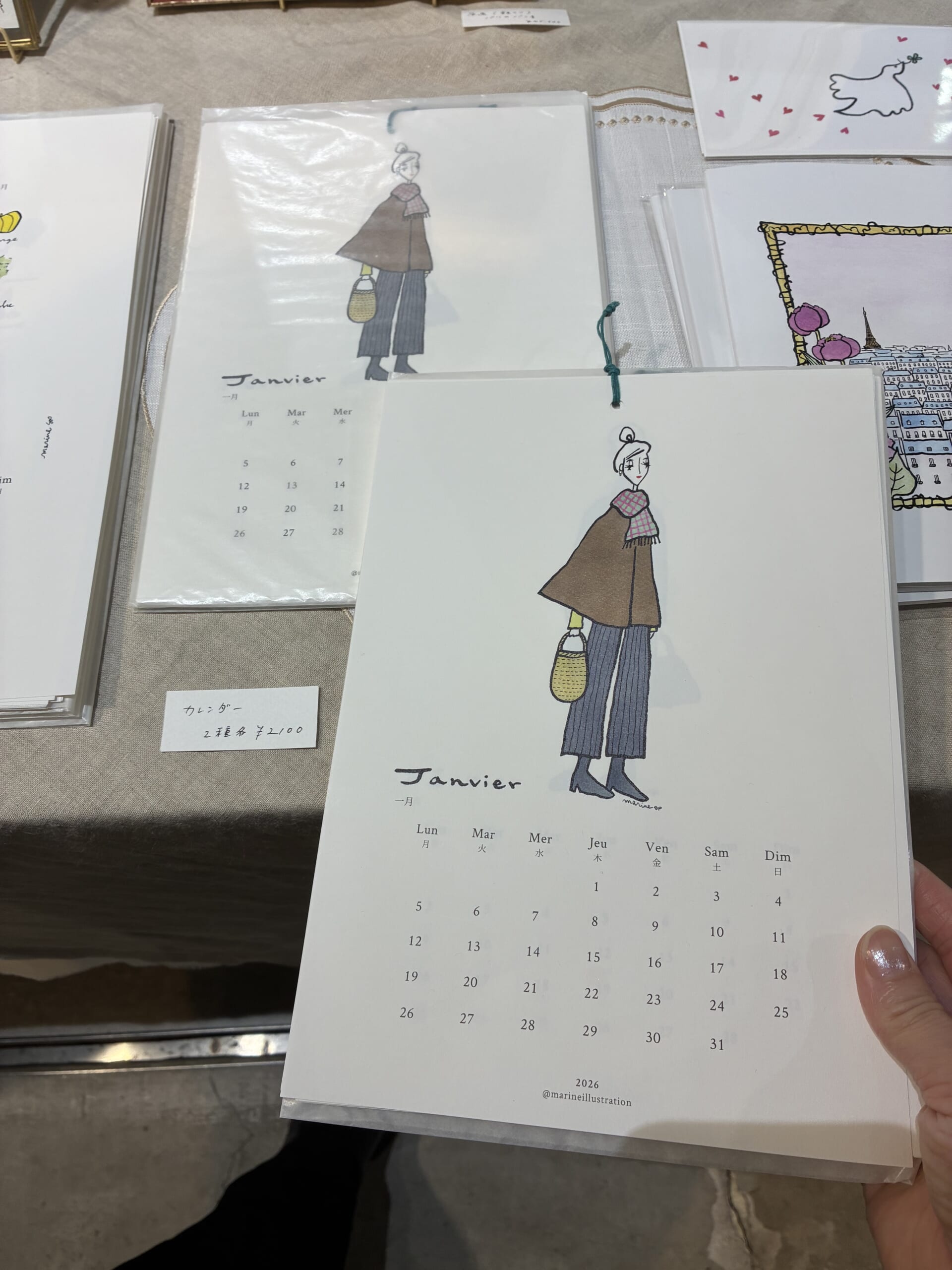 他に手に入れたカレンダーは、こちらももう何年も買い続けているパリ在住イラストレーターmarineさんの12人のパリジェンヌカレンダー。