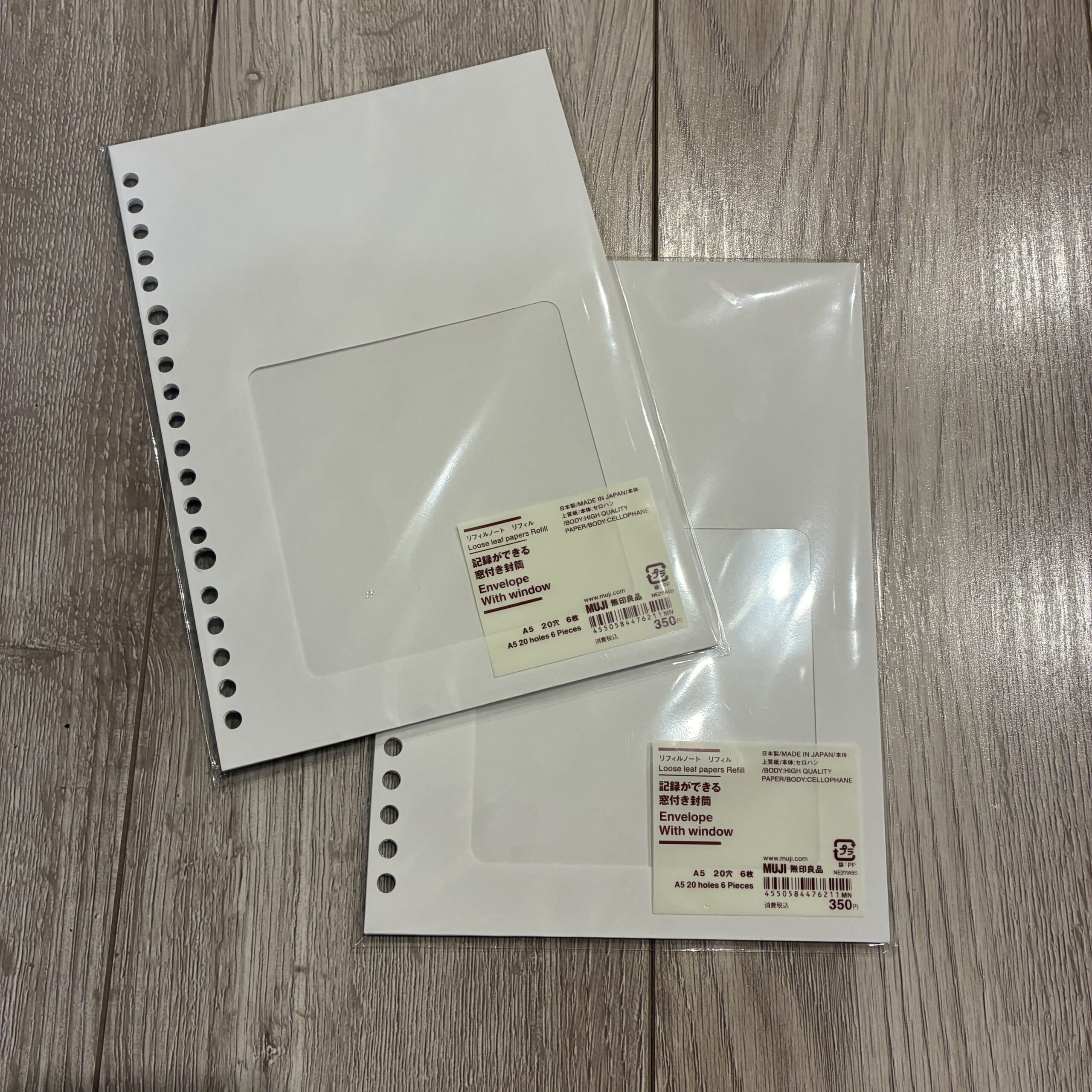 最後に紹介するのはこちらの窓付き封筒。仕事のスケジュール管理に無印良品のカスタマイズできるA6サイズ手帳を使っているのですが、こちらを手帳の最後に何枚かセットしておき、レシートや領収書を入れて管理しています。案件ごとに整理できるほか、必要であれば立て替えた分の領収書を封筒ごとスムーズに渡せるので重宝しています。