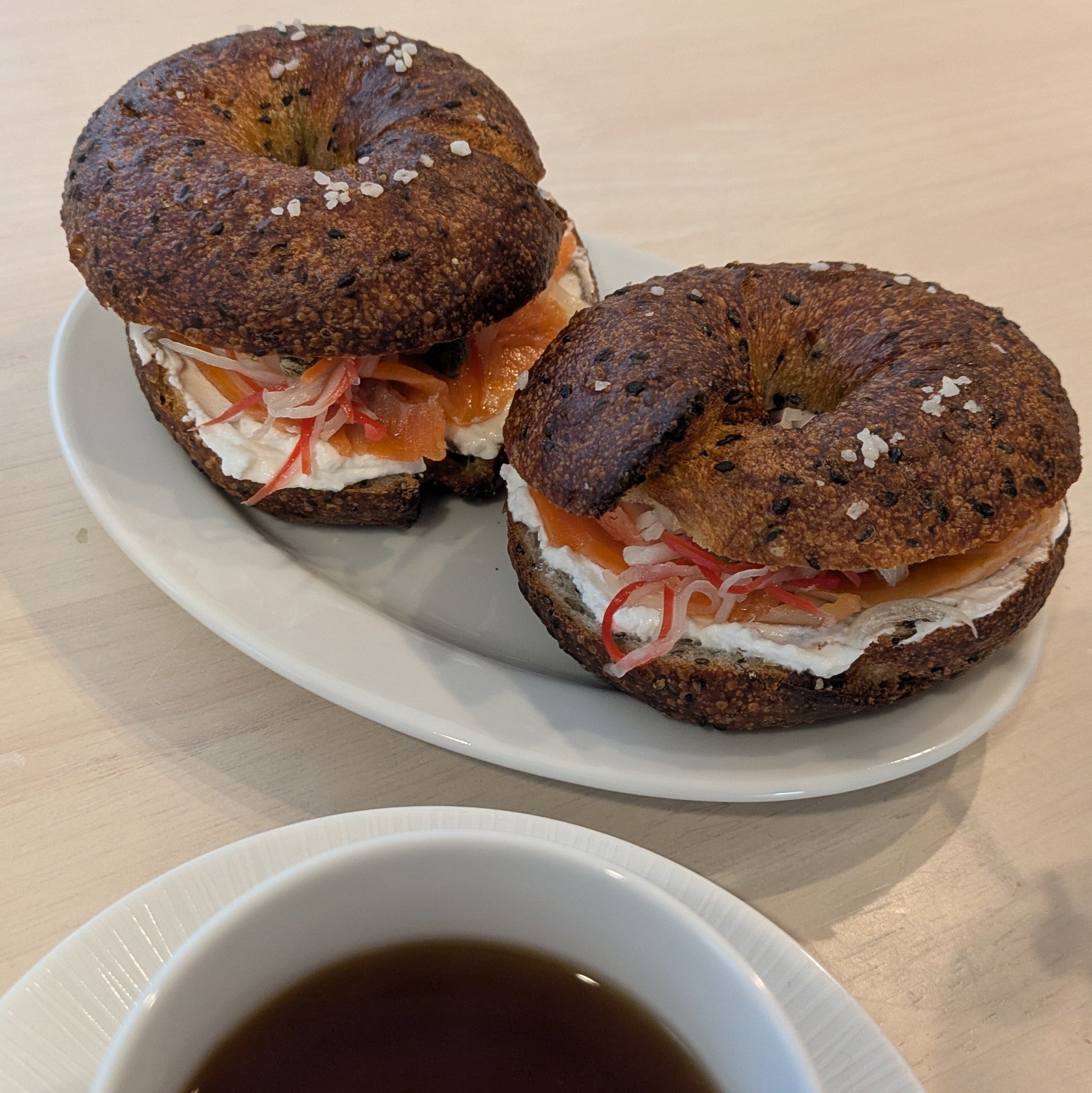 - ベーグル(今回はCHIHARUちゃんが以前オススメしてくれてた『シティベーカリーのごま塩ベーグル』にしてみました!)