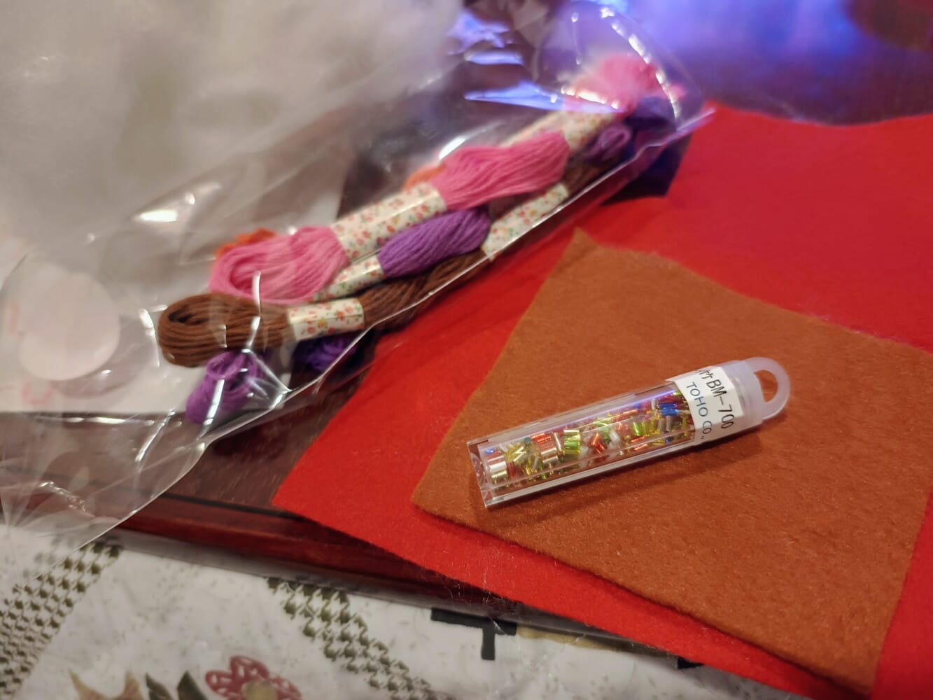なんとなくのイメージだけをもって、フェルト・ビーズ・刺繡糸・綿を用意していました。