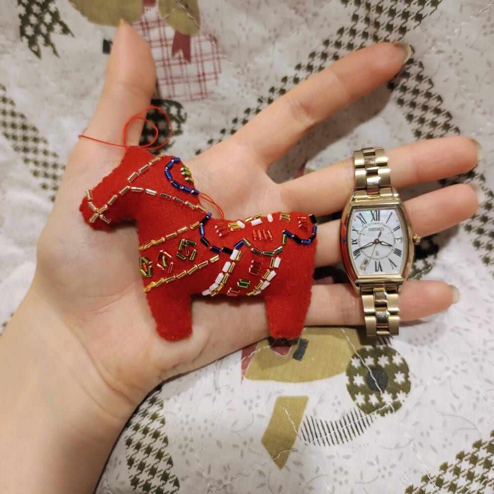 スウェーデンを象徴する民芸品の木彫りの馬の置物のことで、クルビッツと呼ばれる花模様がペイントされていて可愛いのです。