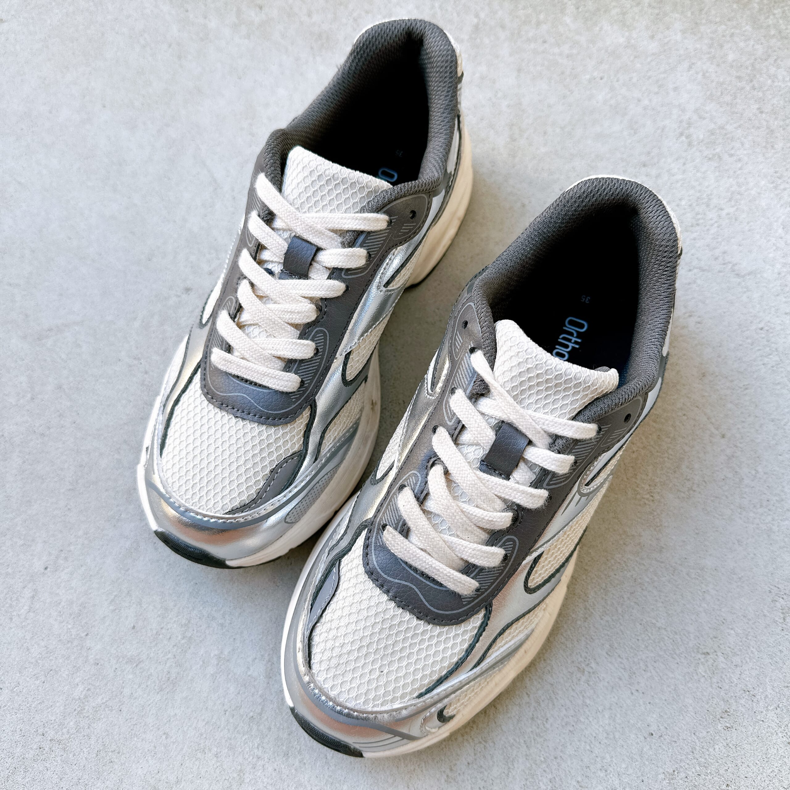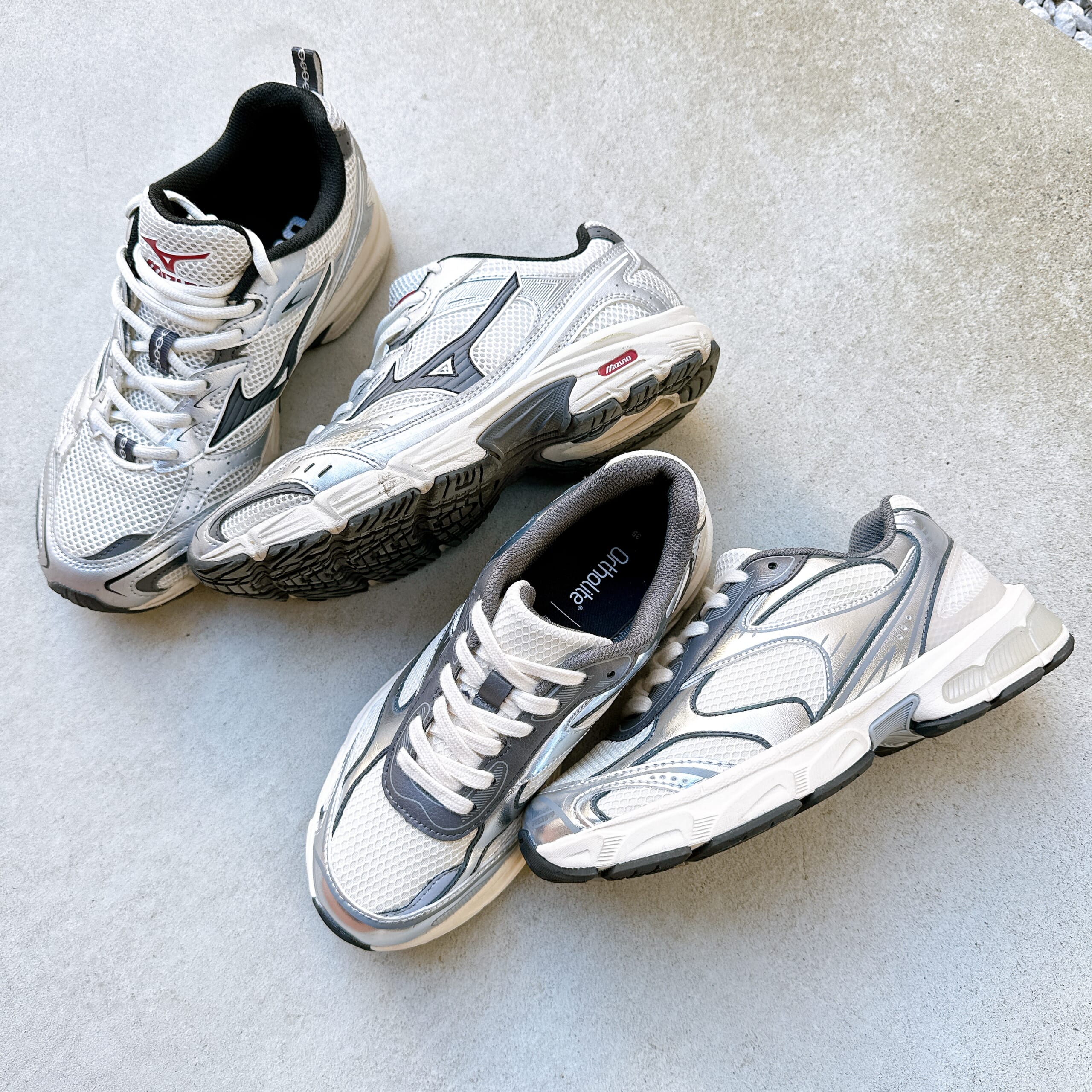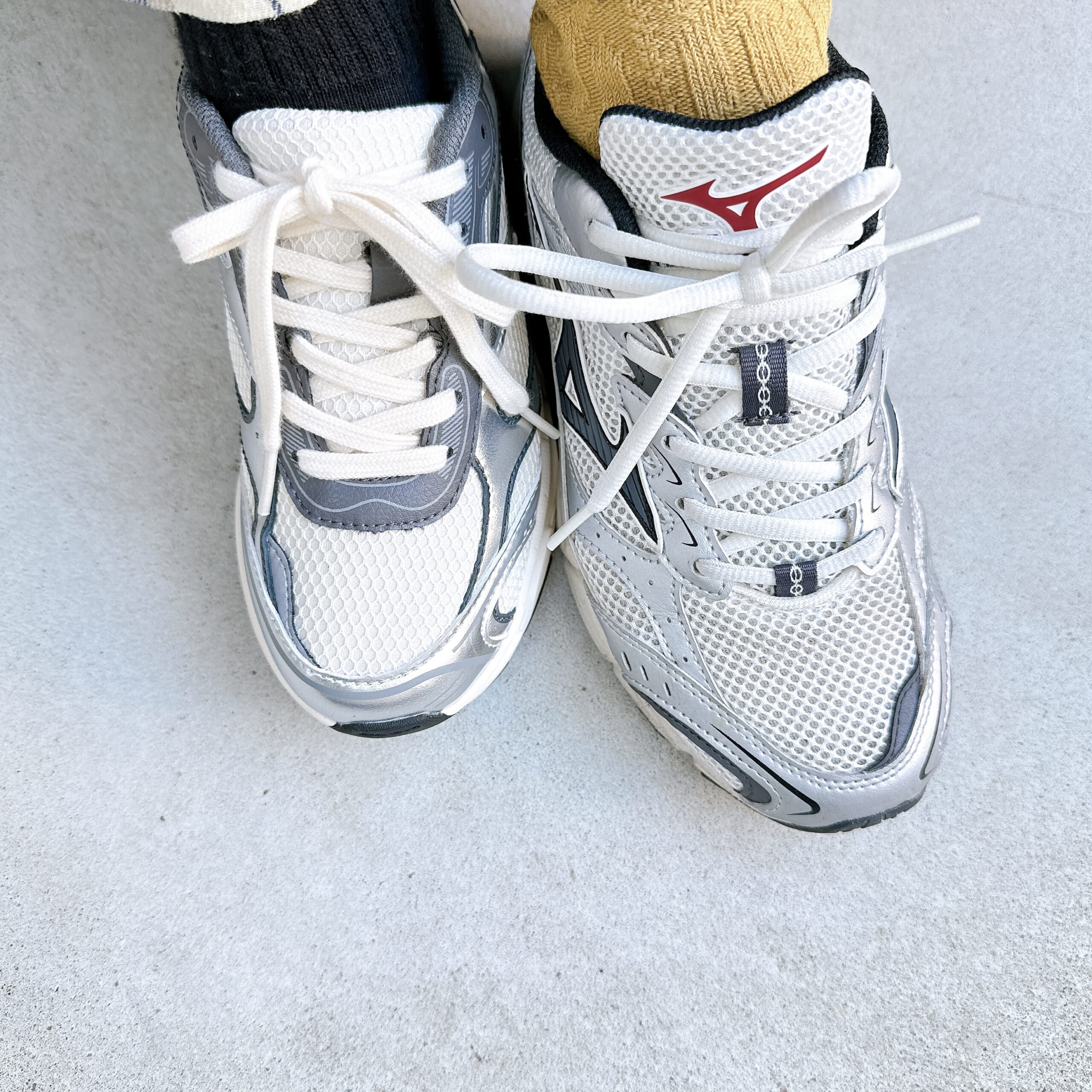 ところどころにブラックも混ざっている『Mizuno MXR 』に比べると、こちらは、オフホワイト×グレー×シルバーと少し柔らかめの配色。