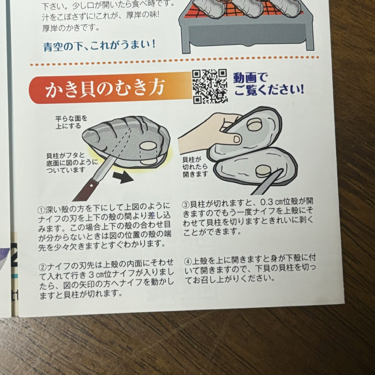 先ほどのリーフレットには牡蠣のむき方の指南もあり。動画のリンクもついているので簡単にむくことができました!