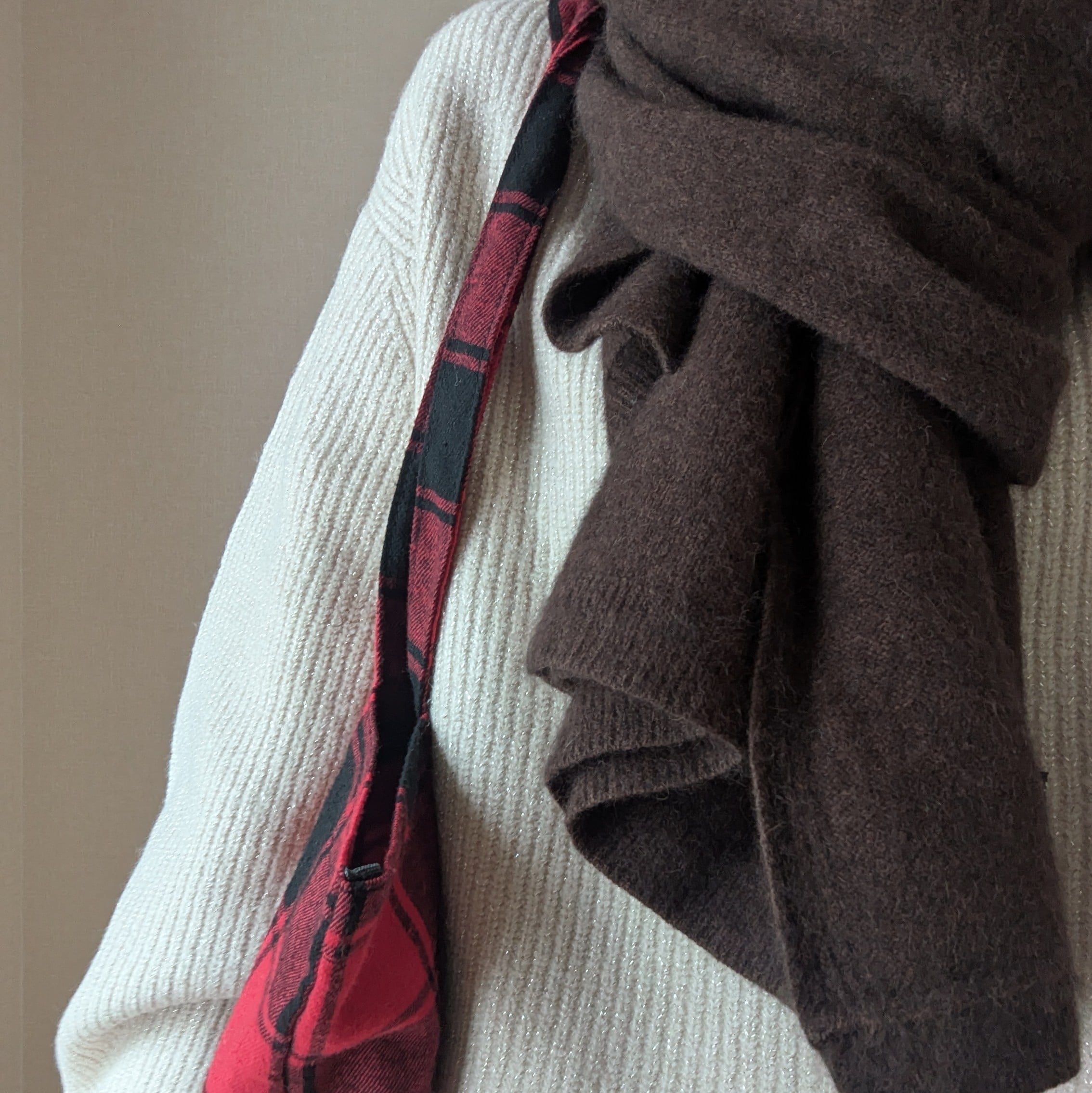 ブラウンのラクーン混ニットの方も、こっくりした色味がこれからの時期に重宝しそう。次はロングスカートに合わせてみようかな。