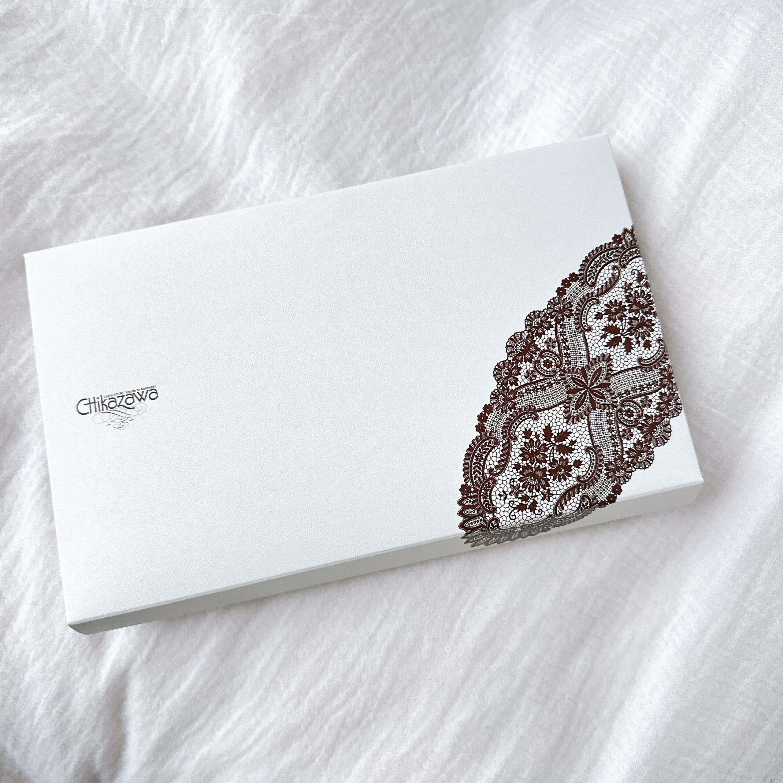 公式サイトやLEEマルシェでタオルハンカチだけを購入したことがないので、通常がどのような包装なのかわかりかねますが、近沢レースの化粧箱に梱包されていました!