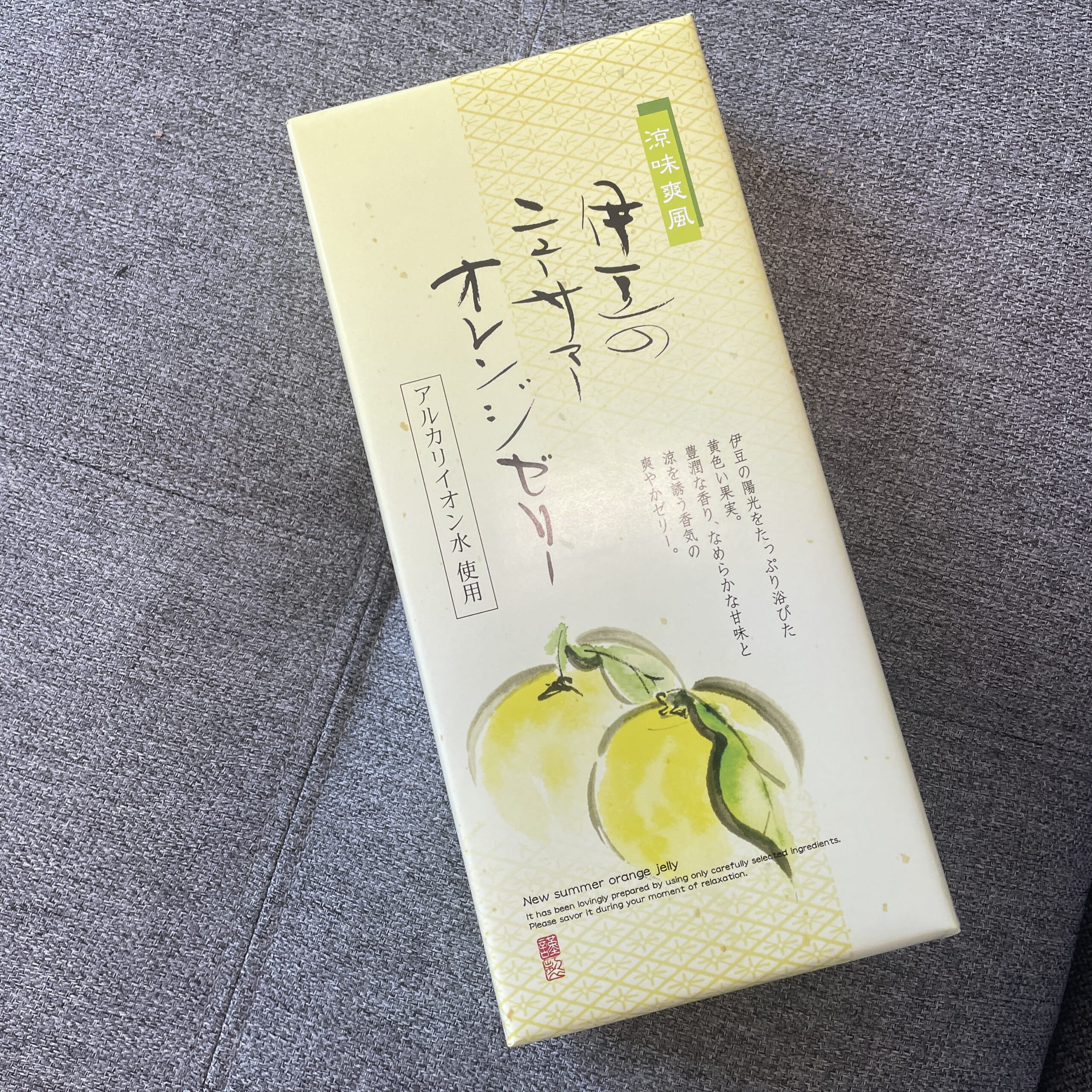 お土産は伊東の銘菓「ニューサマーオレンジゼリー」