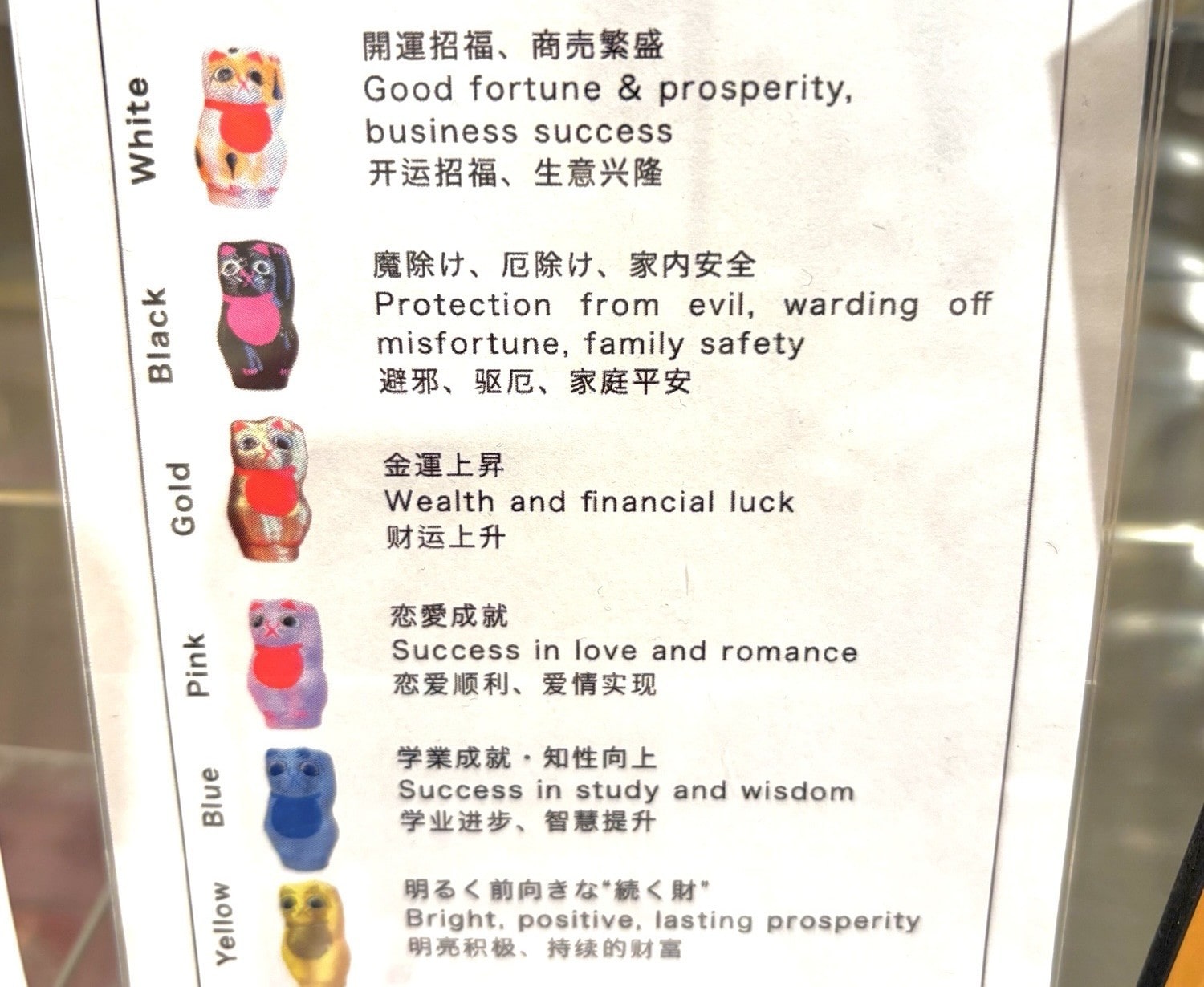 さらに、色によっても意味があるそうで、様々なカラーの招き猫が販売されていました。