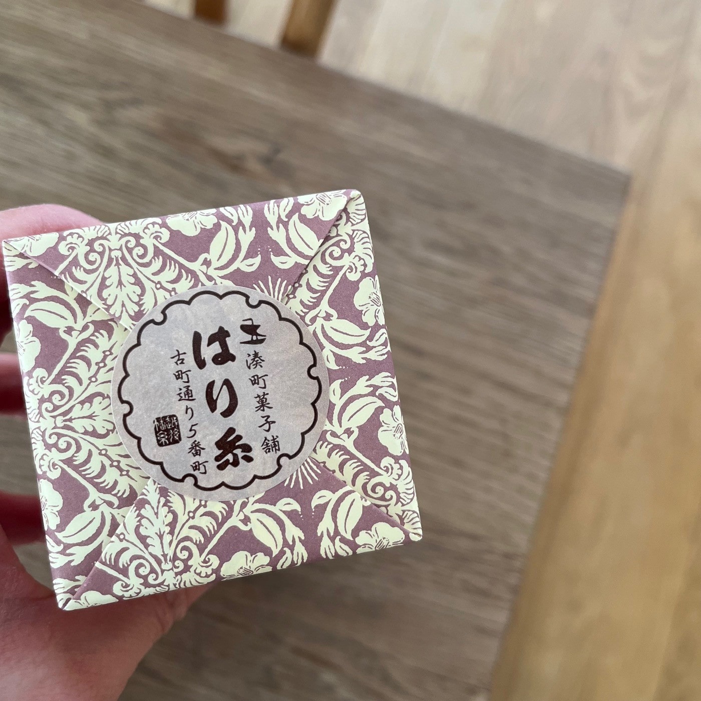 この包装のデザインもレトロで上品な雰囲気が素敵なのです。わたしもお店の近くに足を運んだ際は購入することもありますが、わが家ではお年賀で使わせていただくことが多く・・夫が買いに行き、わたしの分の購入してもらう・・というワケです。(これは絶対!)