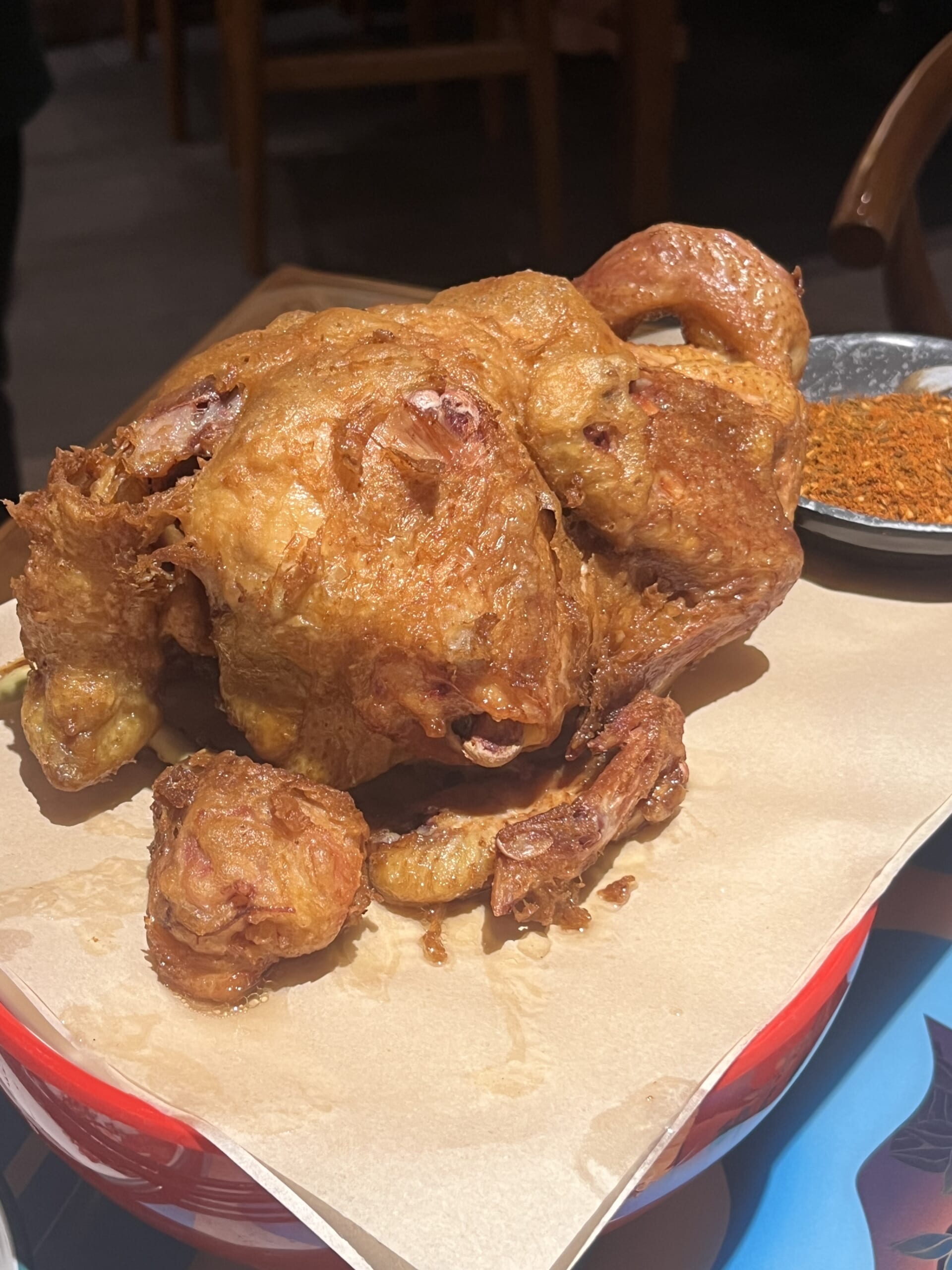 一見すると鶏を丸ごと揚げただけに見えるのですが、実はとても手間のかかる料理!鶏を蒸して、ゆでて、揚げたものなんです。外側はサックサクなのに、中はホロホロ柔らか。食感が繊細なのに旨みが詰まっている鶏料理でした🐓西安に行ったら必ずまた食べたい一皿です!