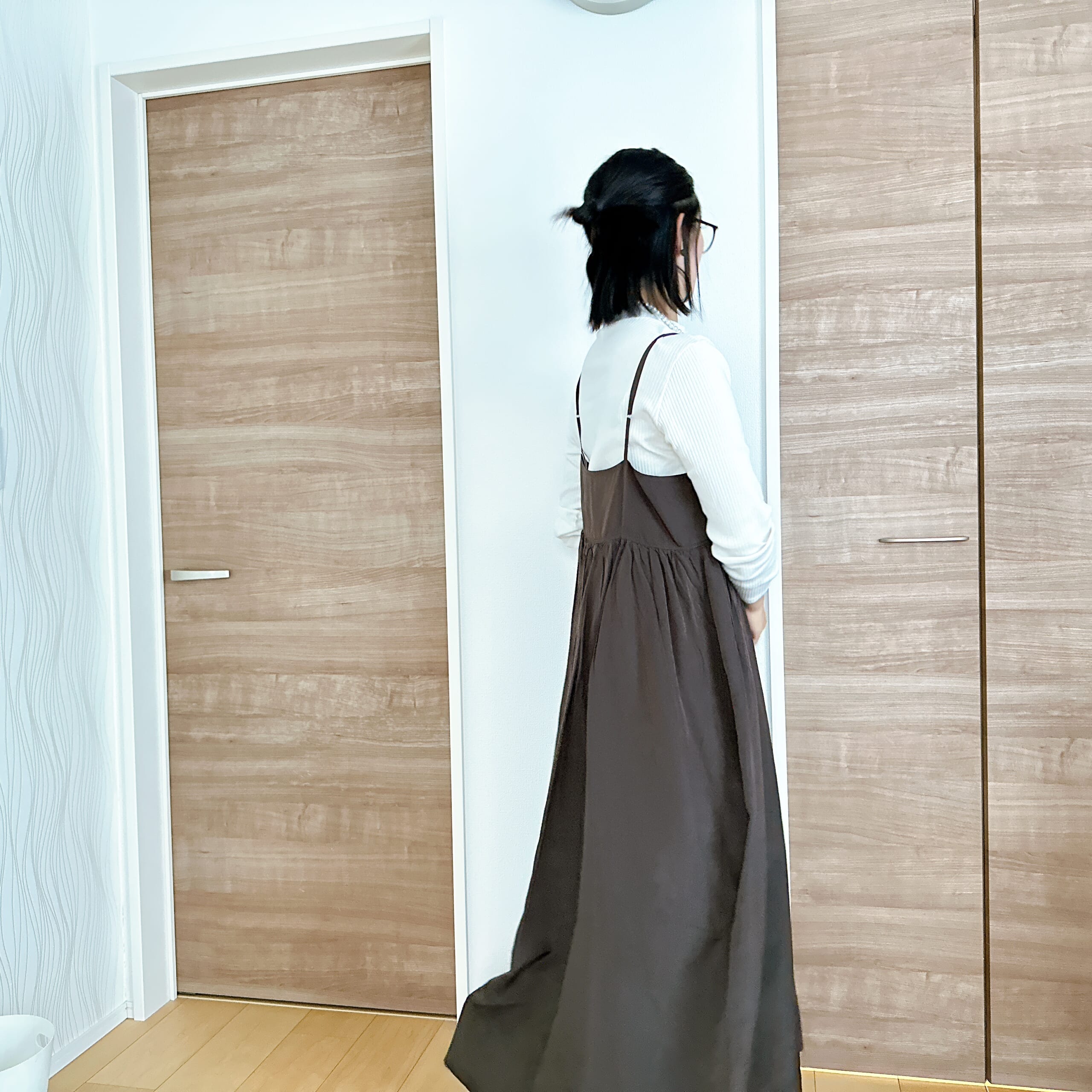 肩ストラップはアジャスターで長さ調節が可能なので、身長やその日のコーデのバランスにあわせて着丈を変えることができちゃいます!