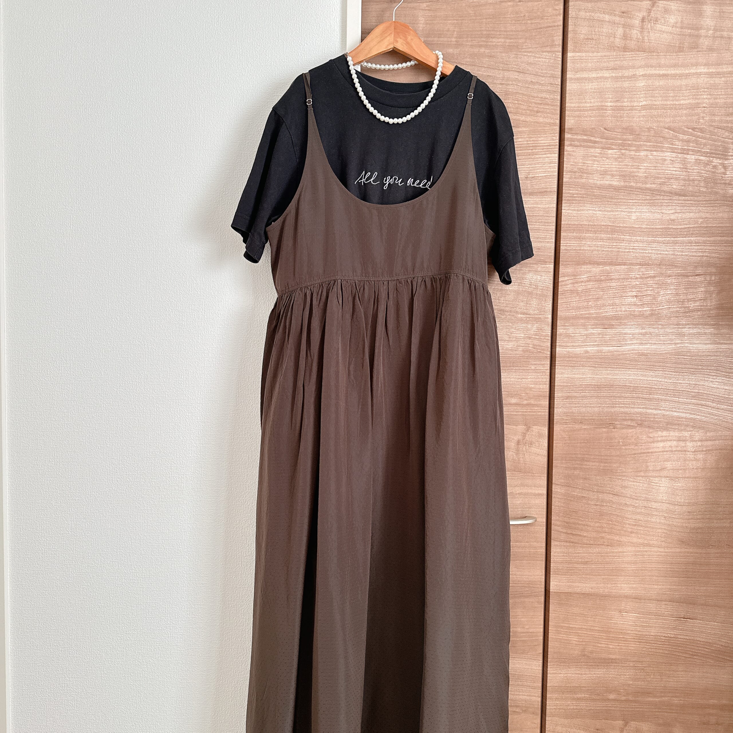 キャミワンピの素材が上品なキュプラなので、ちょっとしたパーティやお食事会にもよさそうです!