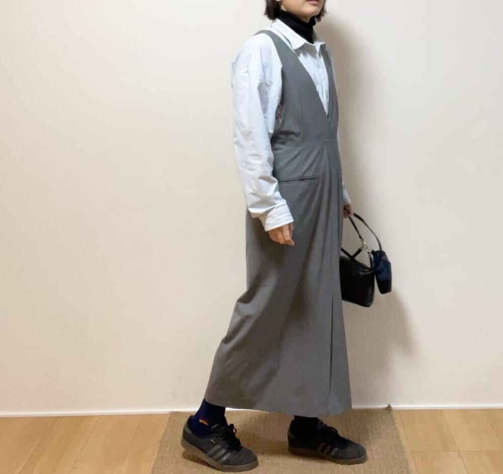 ②【IENA】洗える&NAVYサロペットスカート コーデ