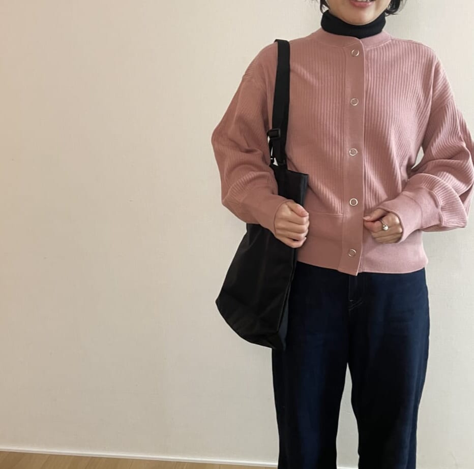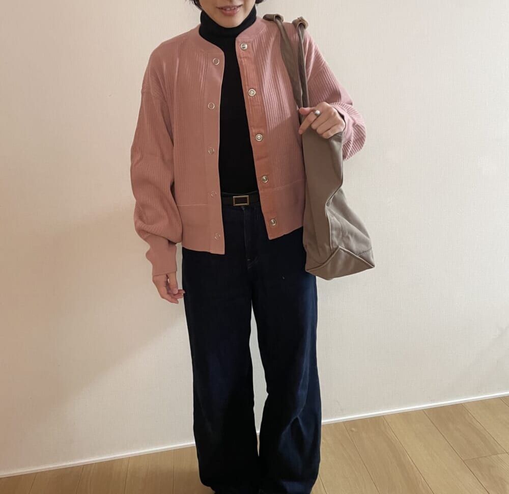 (こちらのカーディガンコーデの写真は冬休み中の末子が撮ってくれました、大変隅に寄っているのもご愛敬)