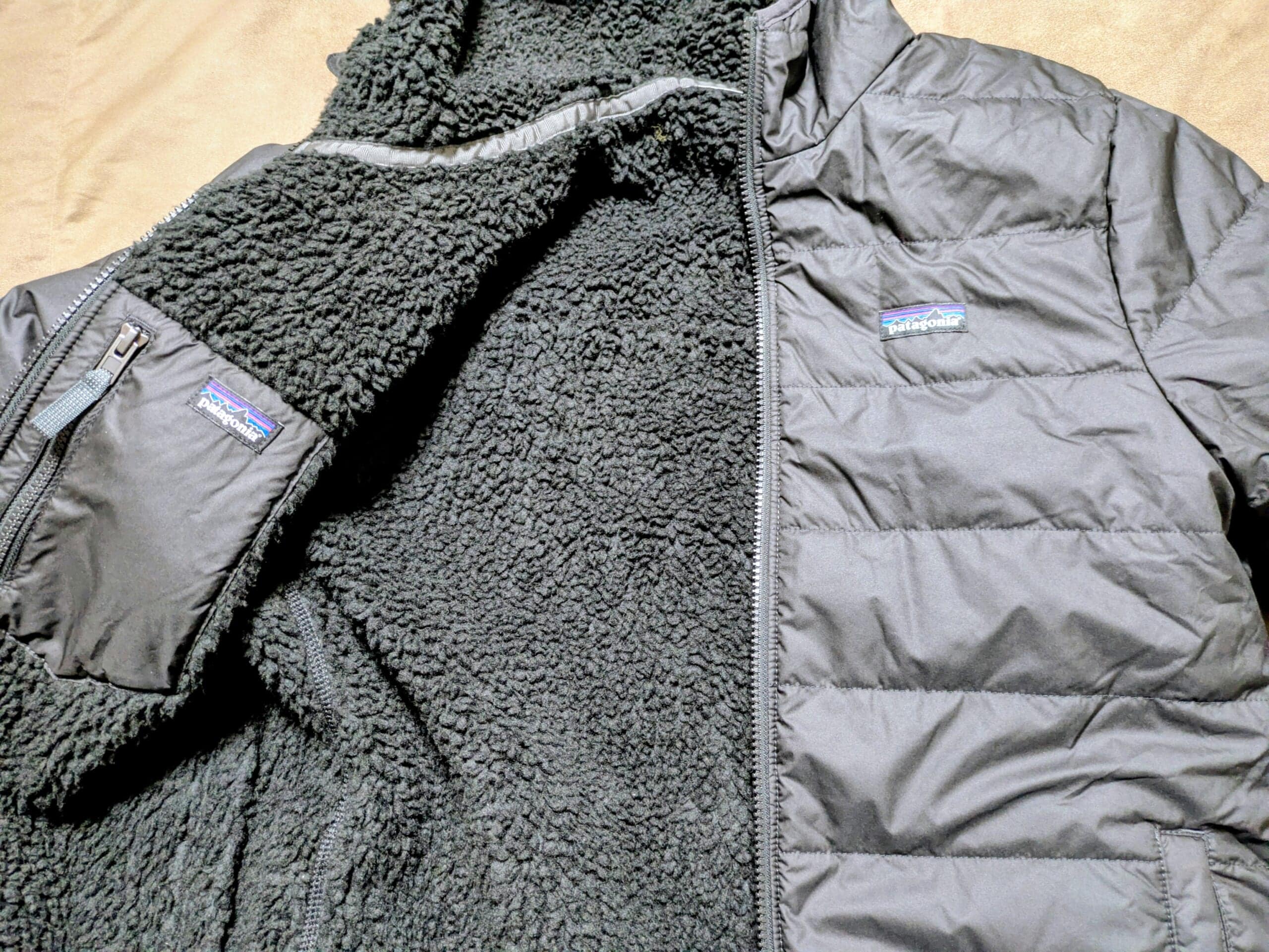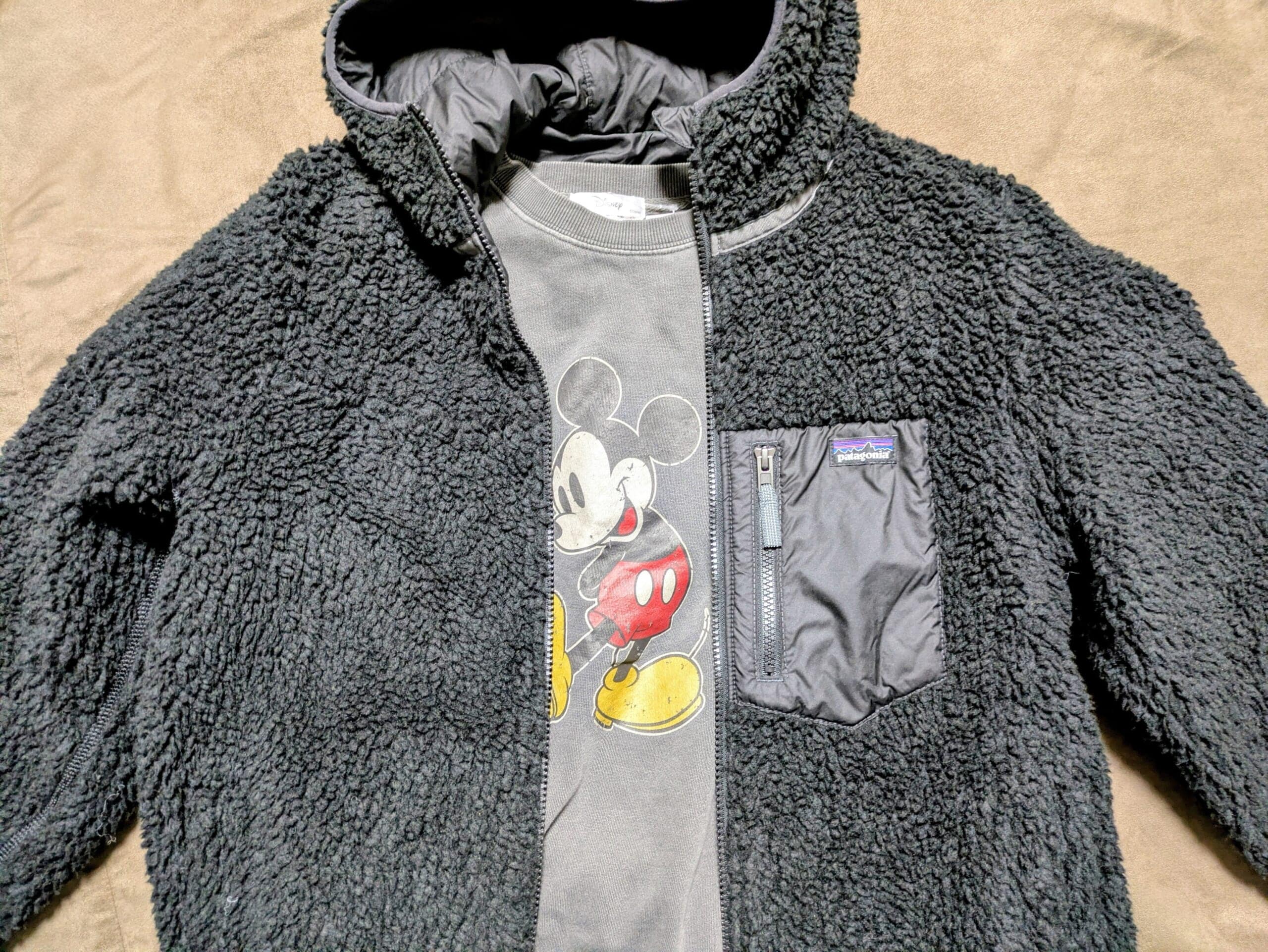 スウェット1枚で着るのは寒いので、娘と兼用しているpatagoniaのKids サイズジャンパーと合わせてみました