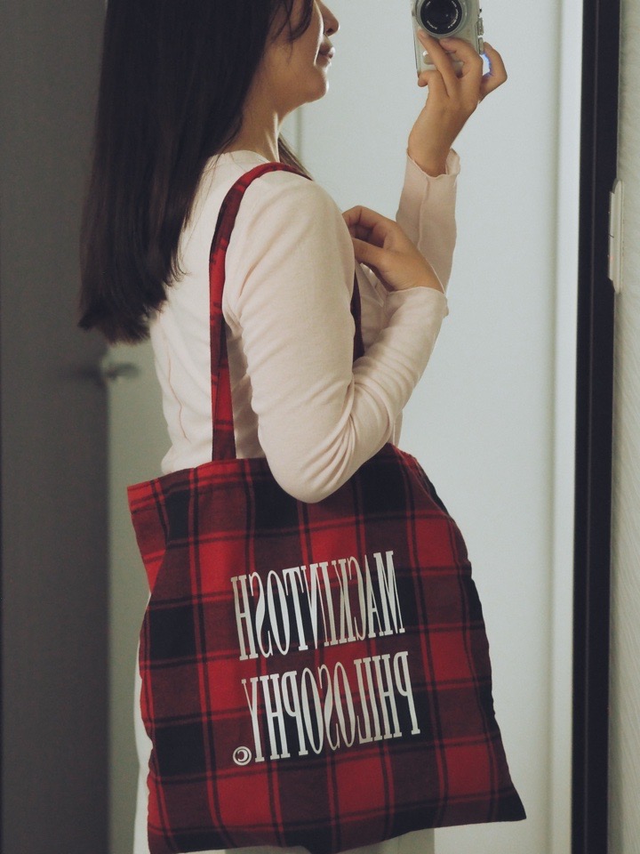 バッグは LEE合併号の付録「マッキントッシュ フィロソフィー 大人のチェック柄BIGトート」 を合わせました。