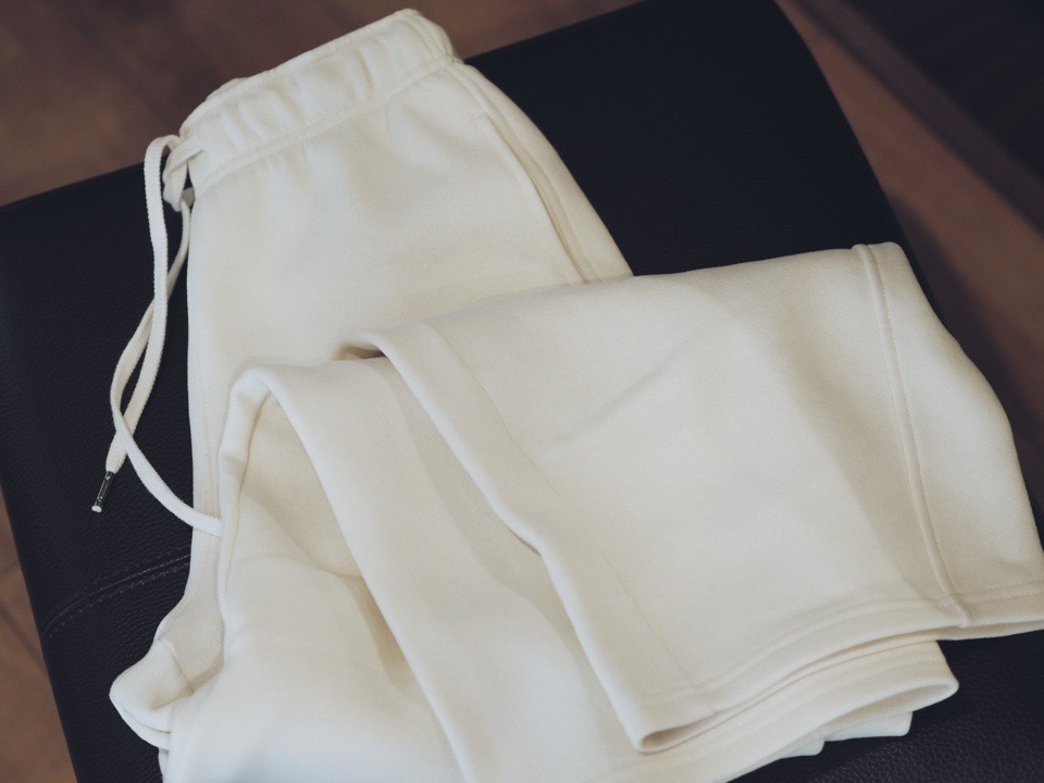 スウェット素材なのに部屋着感が出にくく、シルエットはトレンドのバレルレッグ。