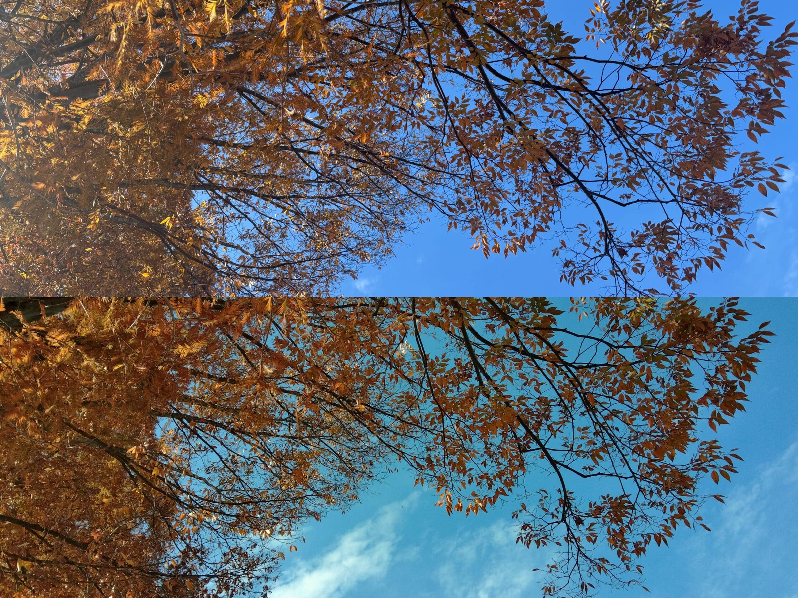 同じ場所から空と木を入れて撮ってみたら、こんなにも色みが違う…!