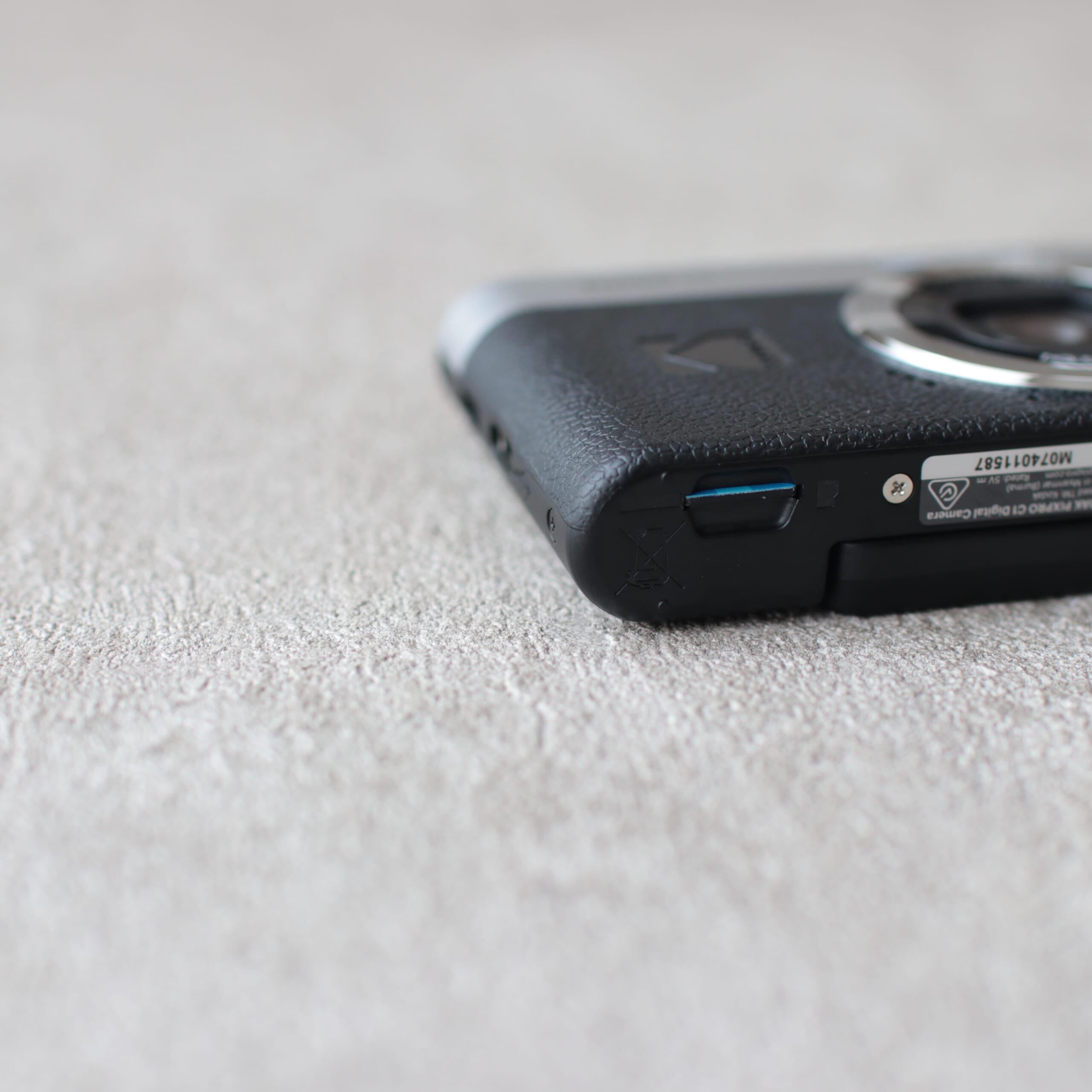 撮った写真は、microSDカードやケーブルを繋いで取り込むスタイル。