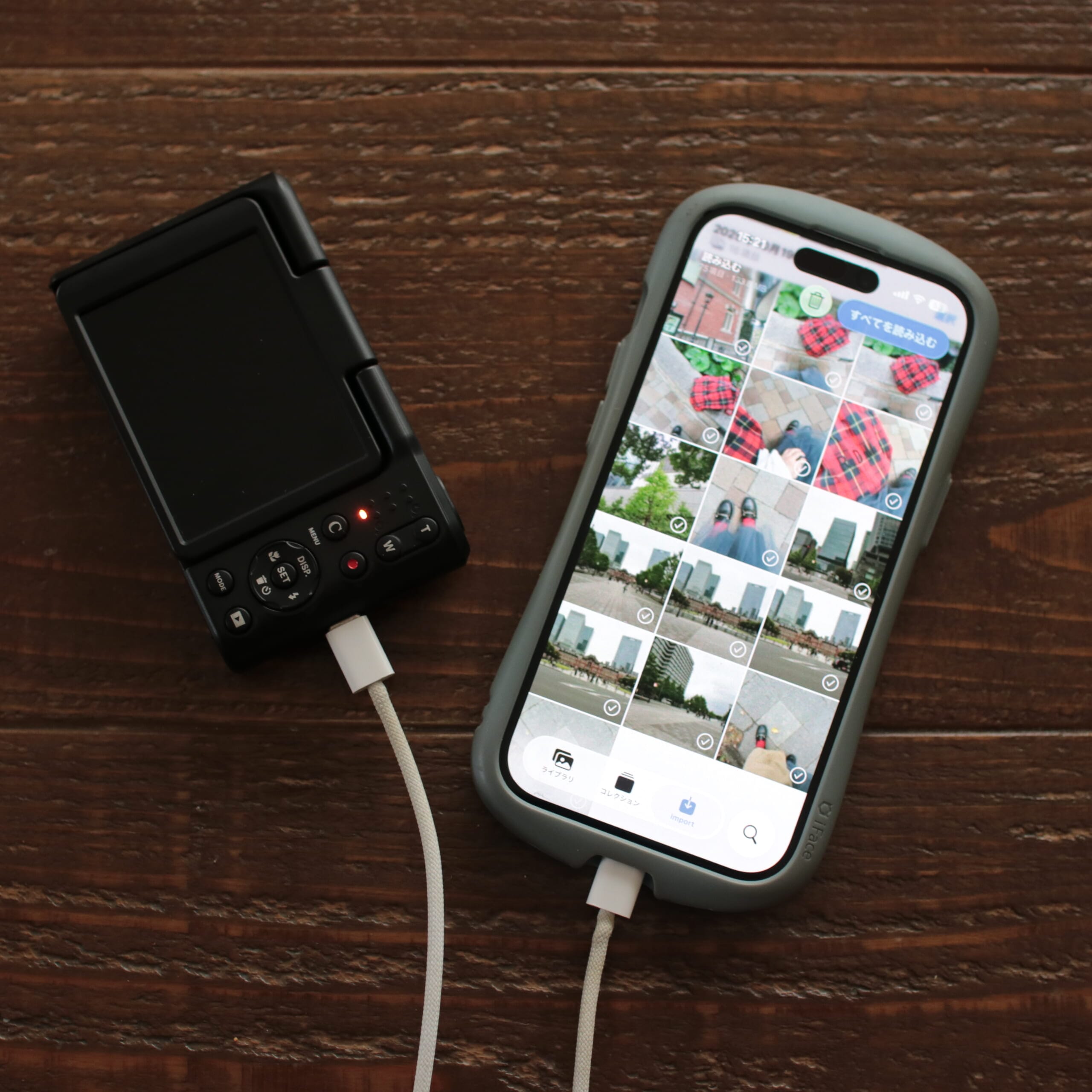 あとは私は、iPhoneと直接ケーブルで繋いで写真を取り込んでいます。