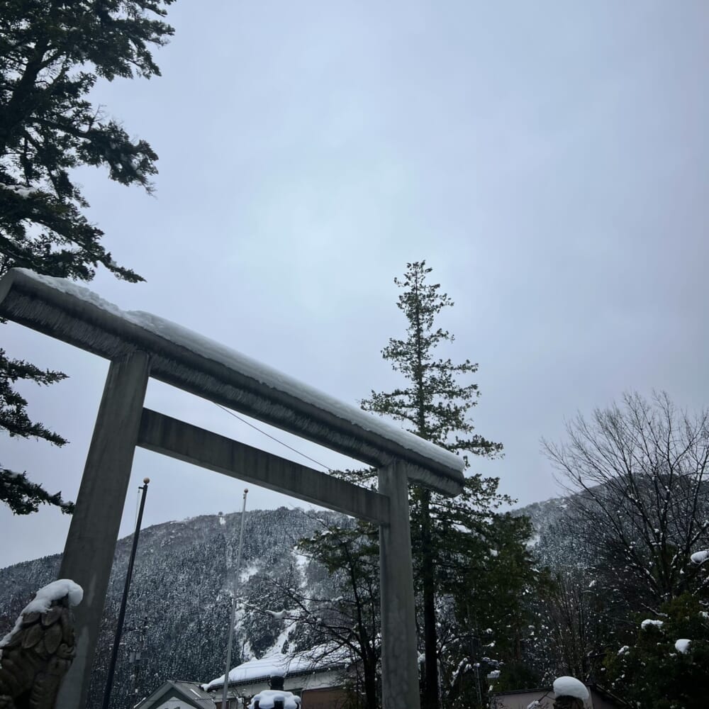 白山のふもとに立つ神社なので、雪に覆われた山の木々が本当に綺麗で、何度も見てきた景色ですがやっぱり感動する美しさ。