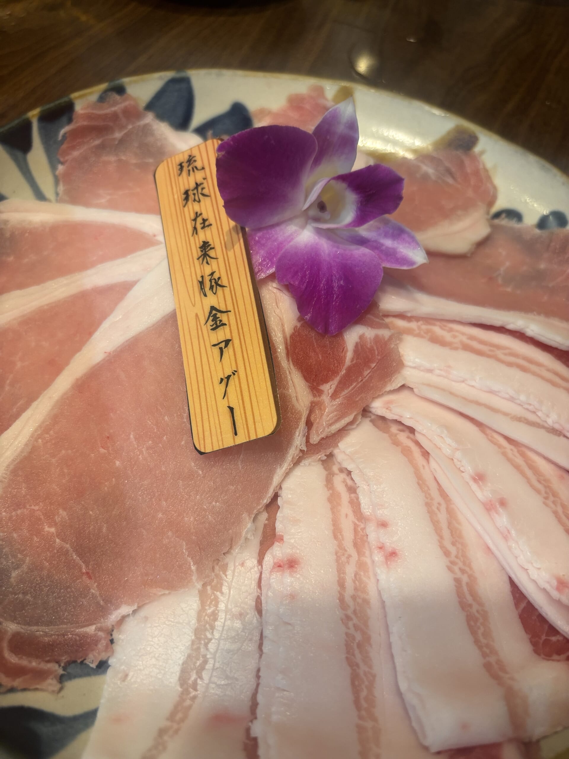 夕飯はアグー豚しゃぶしゃぶを食べに行きました。
