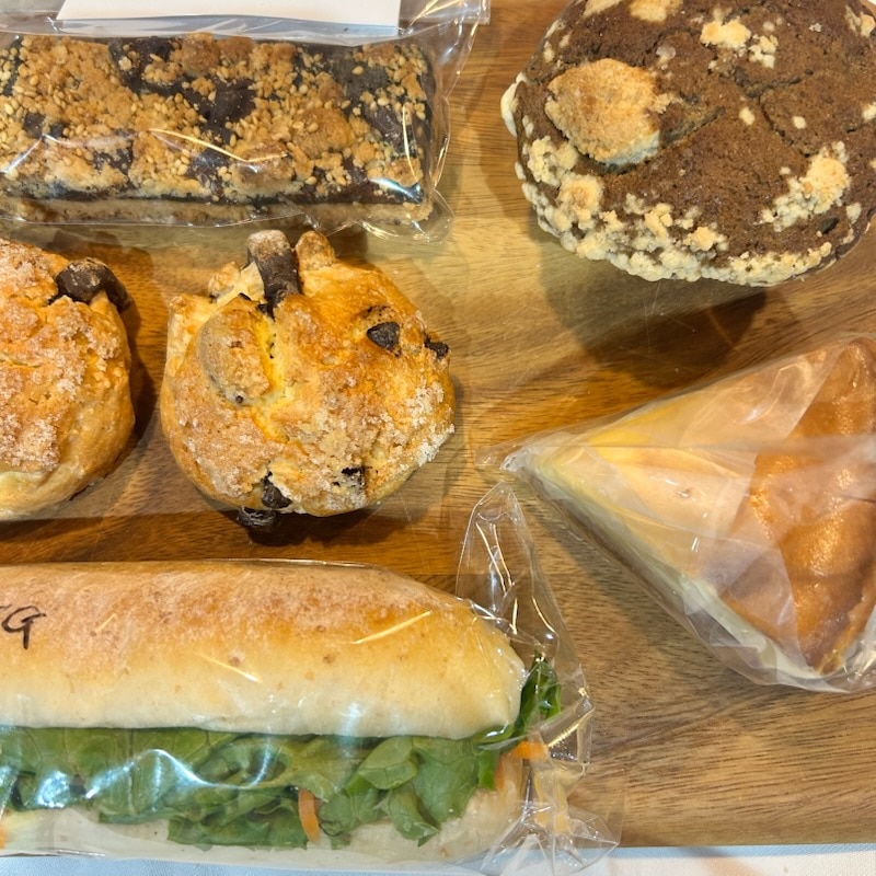 チョコスコーンやほうじ茶と林檎のマフィン、チーズケーキなどを購入