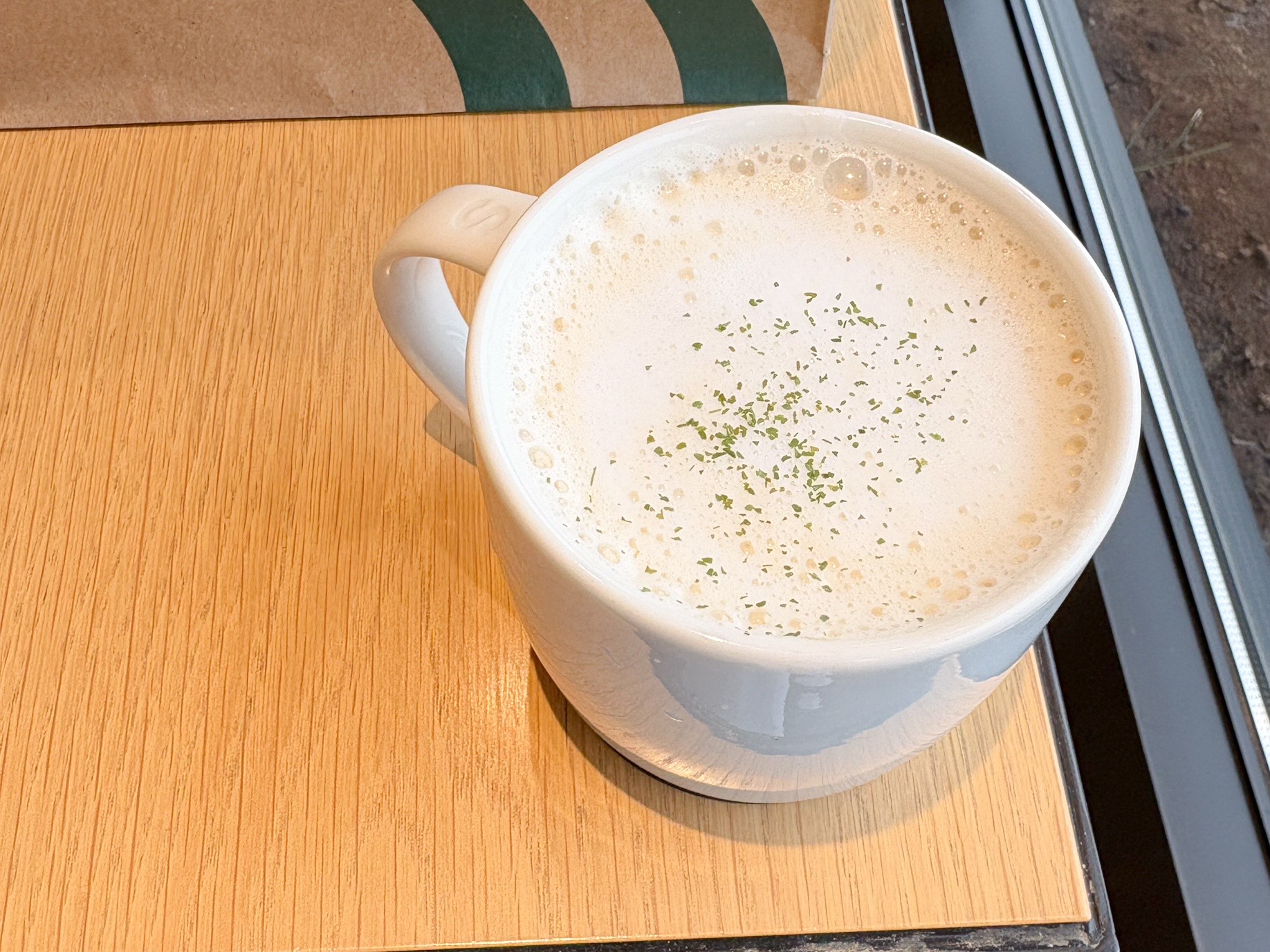 一口飲むと、とろりのなめらかな食感でした。具は入っていませんが、しっかりとトリュフやマッシュルームの味が感じられ、キノコの旨みや焦がしベーコンのコクがしっかりわかり、濃厚なミルクスープです。寒い日に、スタバでスープが飲めると思っていなかったので、感動でした!