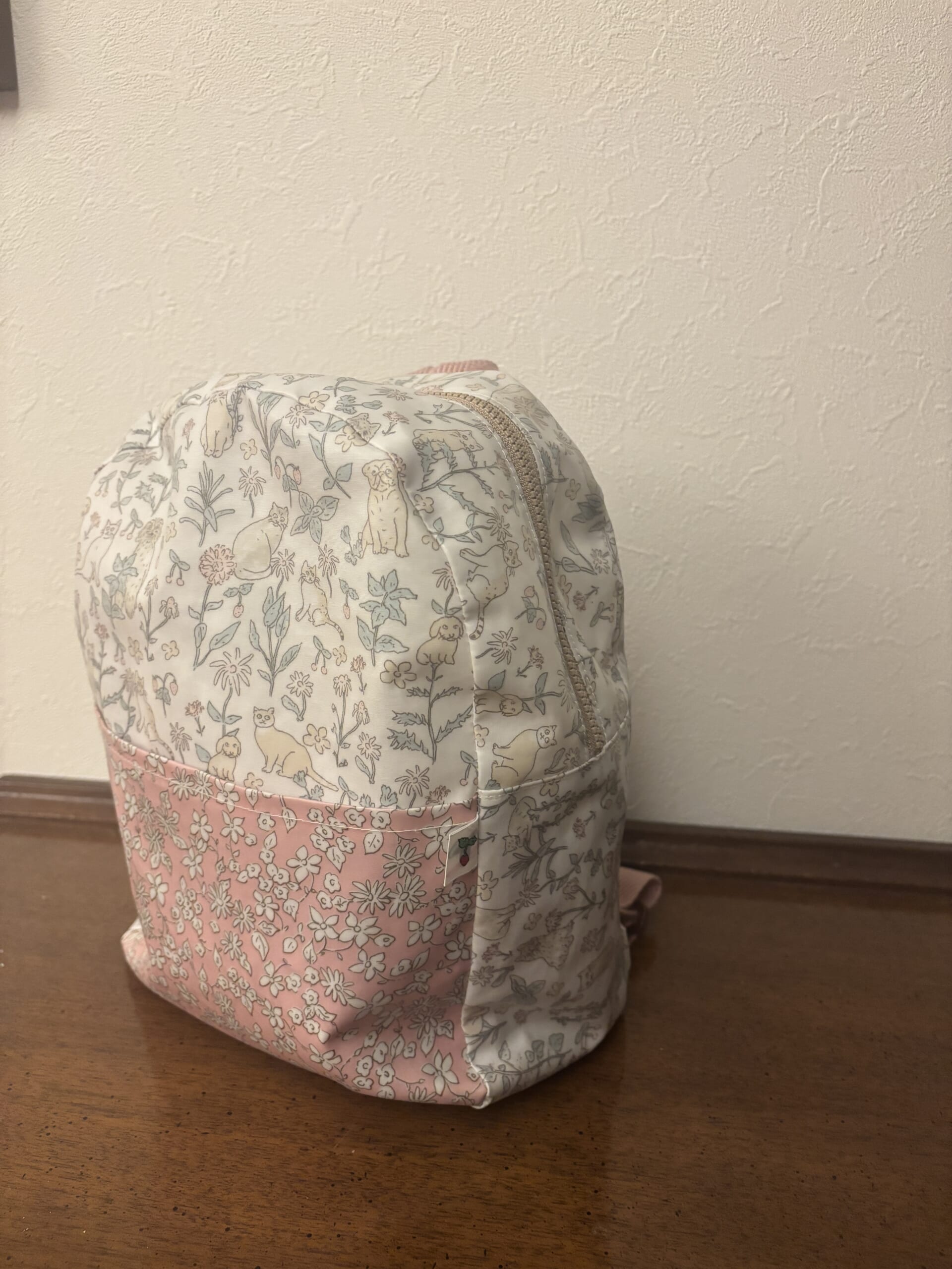 当時2歳の娘。保育園から「お弁当と水筒とオムツが入るリュックを自分で背負って持ってきて!」というやや無理めの指令が出ておりました。大きすぎず、小さすぎないちょうど良い大きさのリュックが中々見つからず……。そうだ!私作れる!ということで、ホクホク気分でCHECK &STRIPES薬院店に向かい、優しい店員さん達に相談すると無知な私の為に「こう配置して裁断するといいよ!」と図まで書いてくださり、買った布を手にソーイング教室で「これでリュック作りたいです!」と宣言。