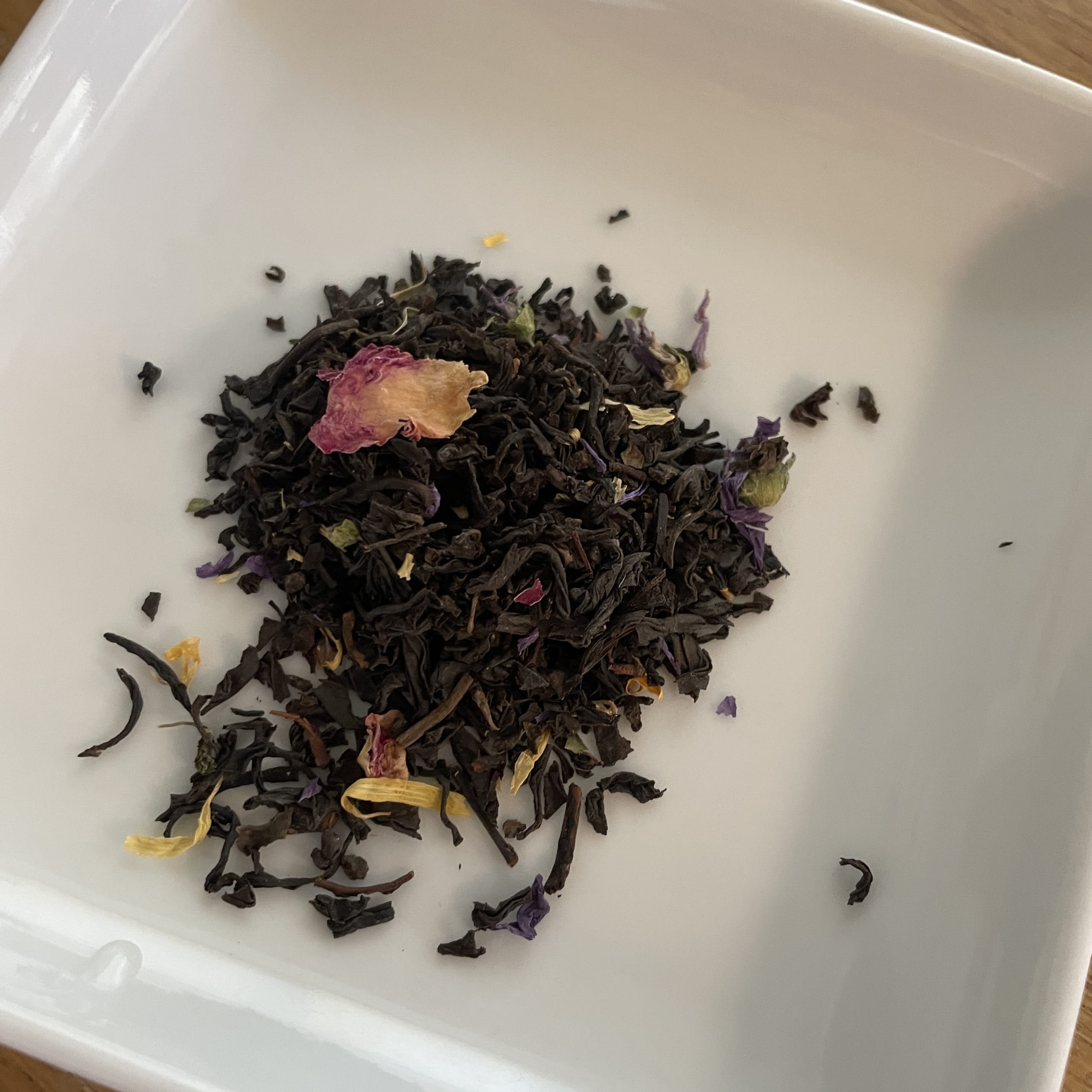 グレープフルーツやマロウなどの花やハーブが入っていて、甘すぎない匂いで香り豊かな紅茶です。