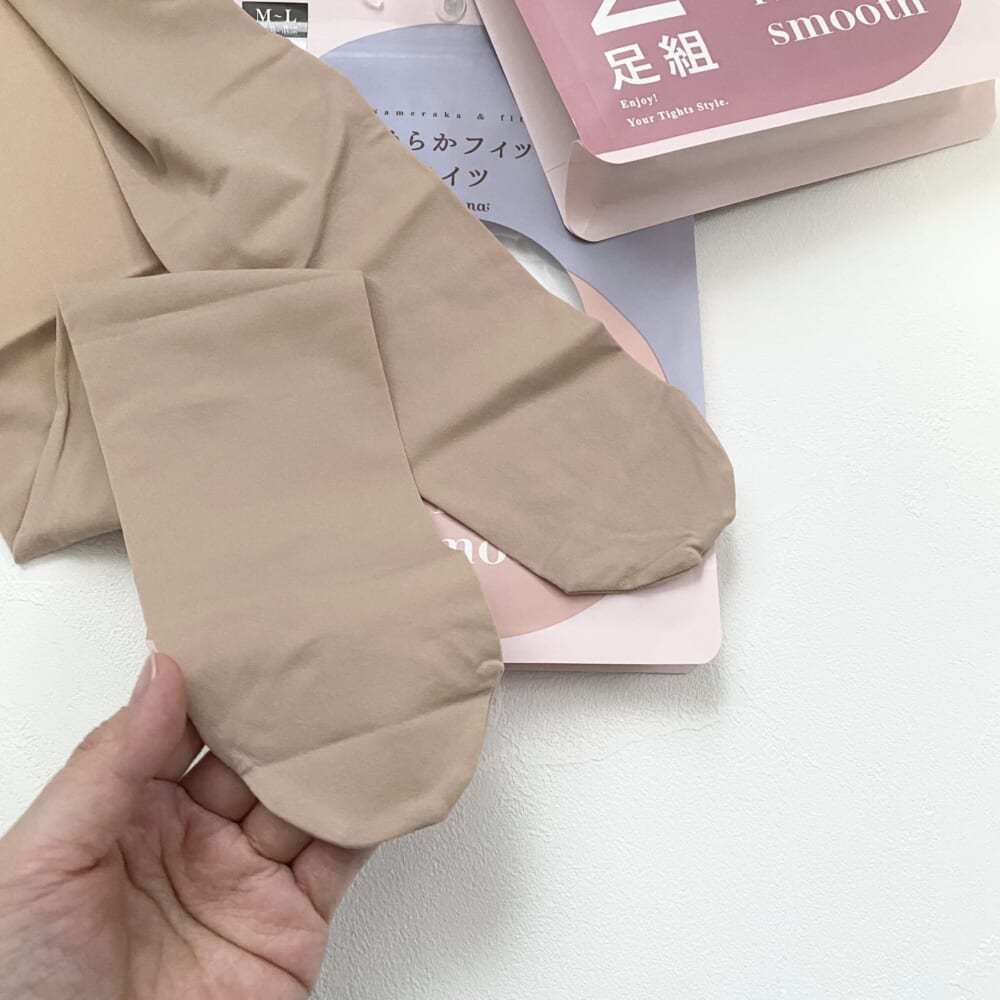 黒タイツ同様でフィット感があり見た目もスマートに履けます。タイツなので厚みがあるためストッキングと比べて丈夫ですし、品名の通り滑らかな触り心地なので使いやすいです。