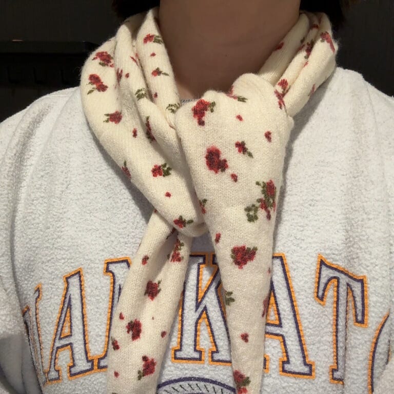 トレンドのニットバンダナ。春先まで使える「小花柄」をZARA SALEで購入しました。娘ともシェアできる可愛さです。バラ柄、最近増えてきていませんか?!気になっています。