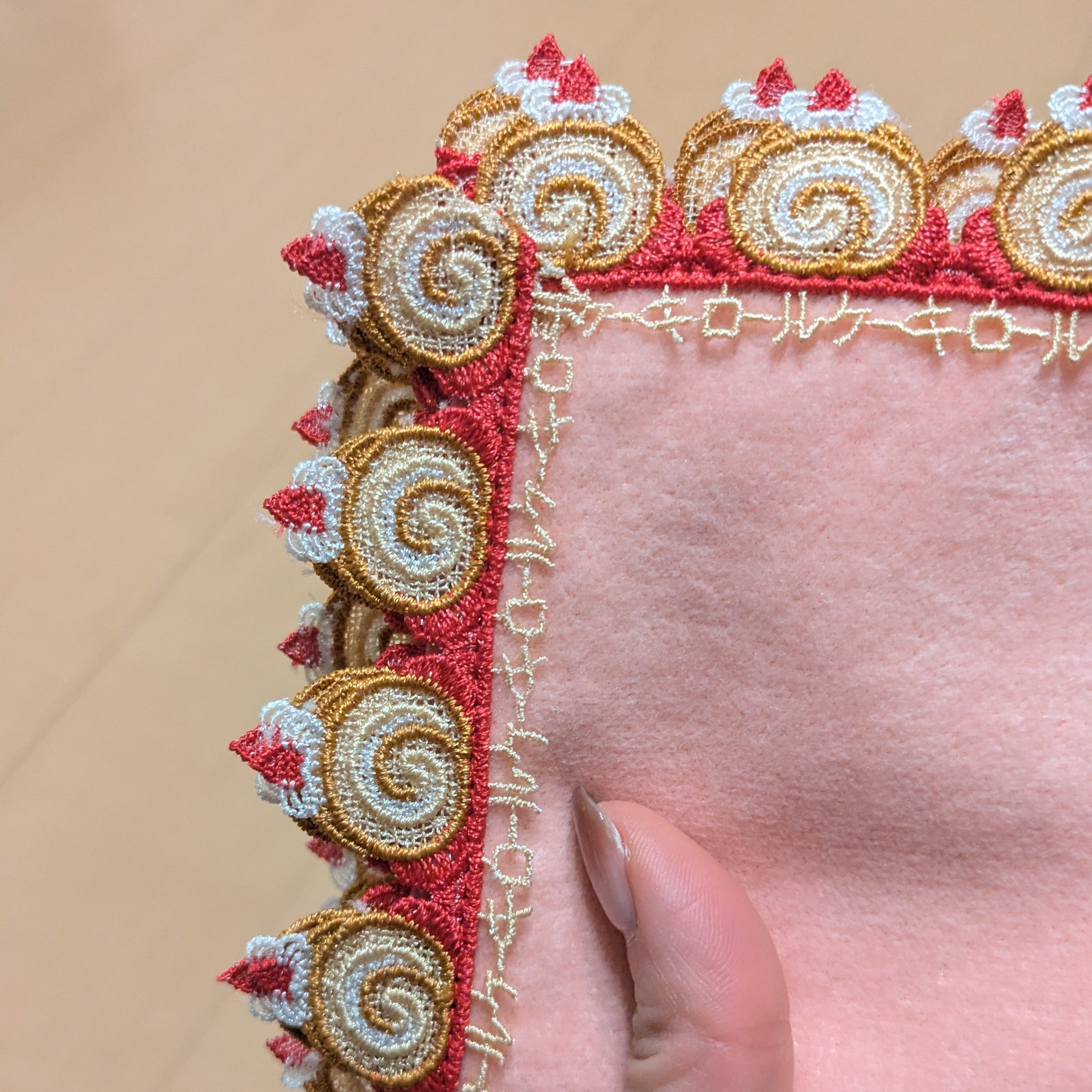 クリームの巻き具合や、さりげなく文字が隠れているこの細やかさと遊び心のバランス……。やっぱり近沢レースさん♡