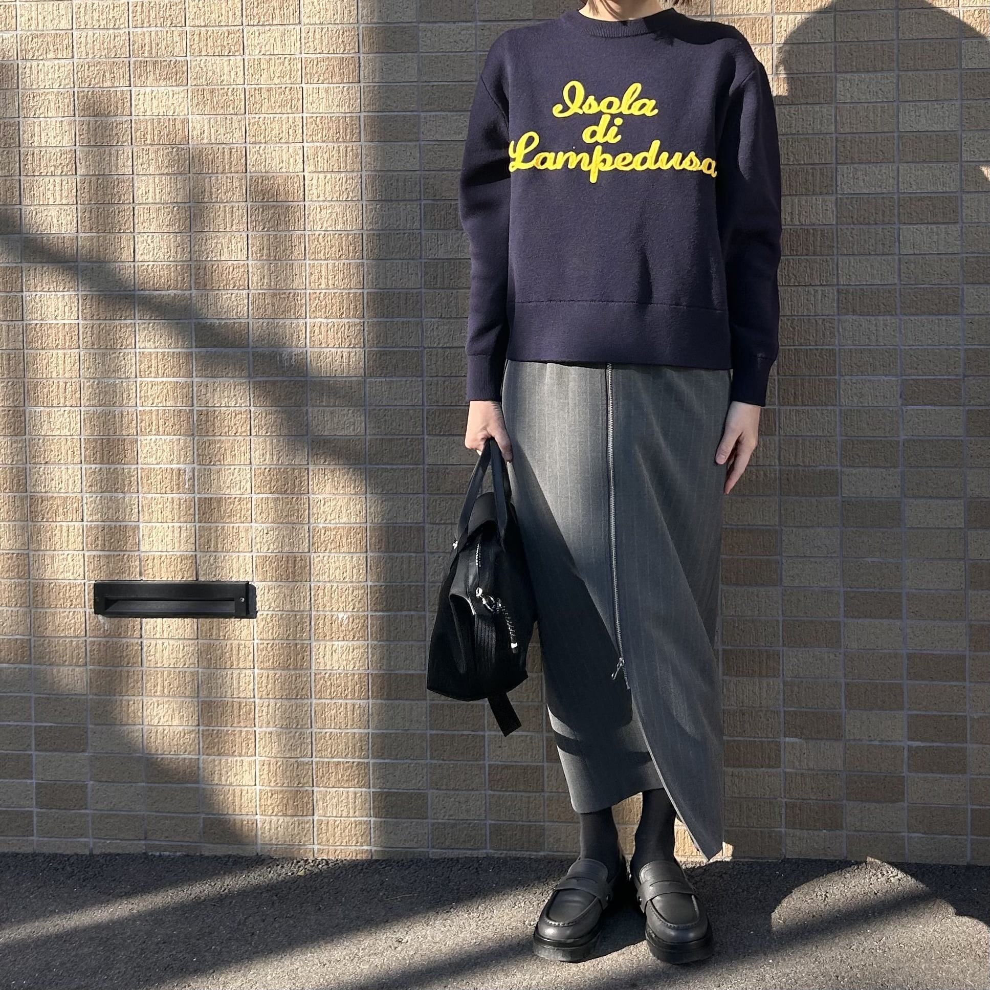 ロゴニットを合わせてカジュアル休日スタイルです。足元はLEE監修のABC MART×高橋美帆さんのコラボローファーです❤️