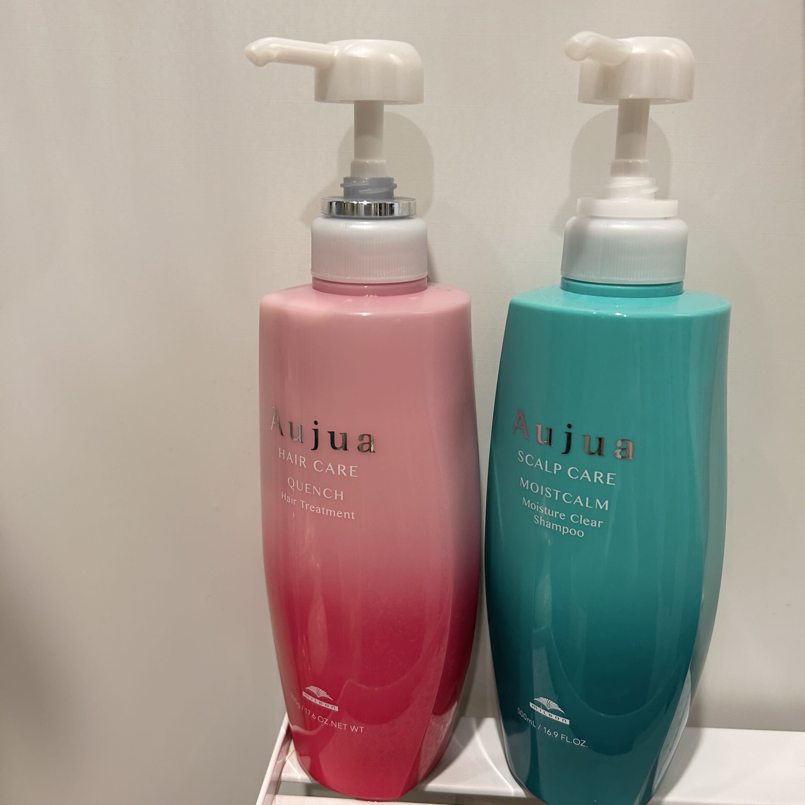 シャンプーは、Aujua(オージュア)のモイストカーム、トリートメントはクエンチを使っています。モイストカームは年齢による頭皮の乾燥やかゆみが気になる方におすすめです!クエンチは乾燥しやすい私の髪質に合っているようでしっとりした仕上がりになります。