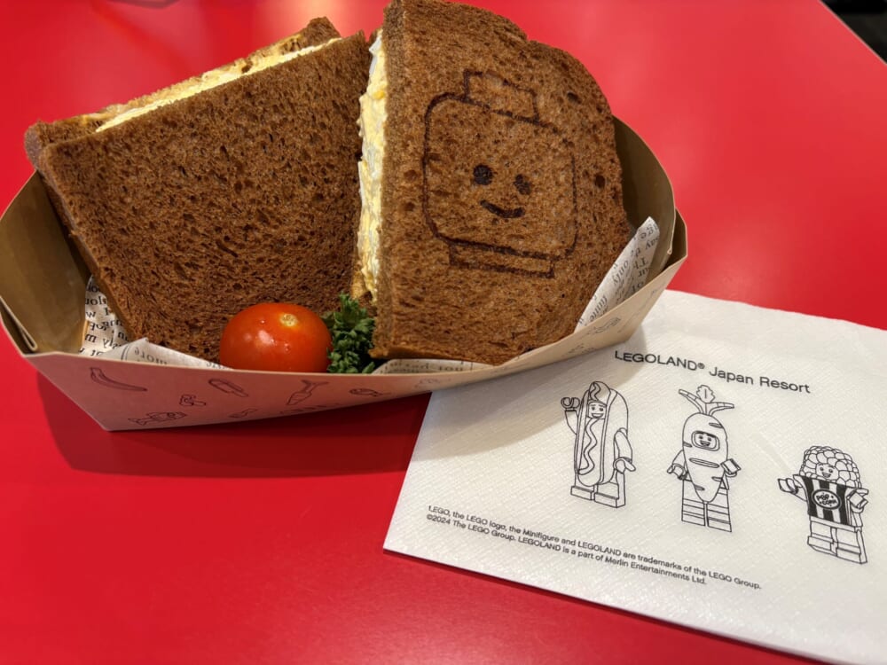 お昼は「ファクトリー・サンドウィッチ・カンパニー」というレストランでパンにキャラクターの焼き印の付いた「たまごサンド」を注文。