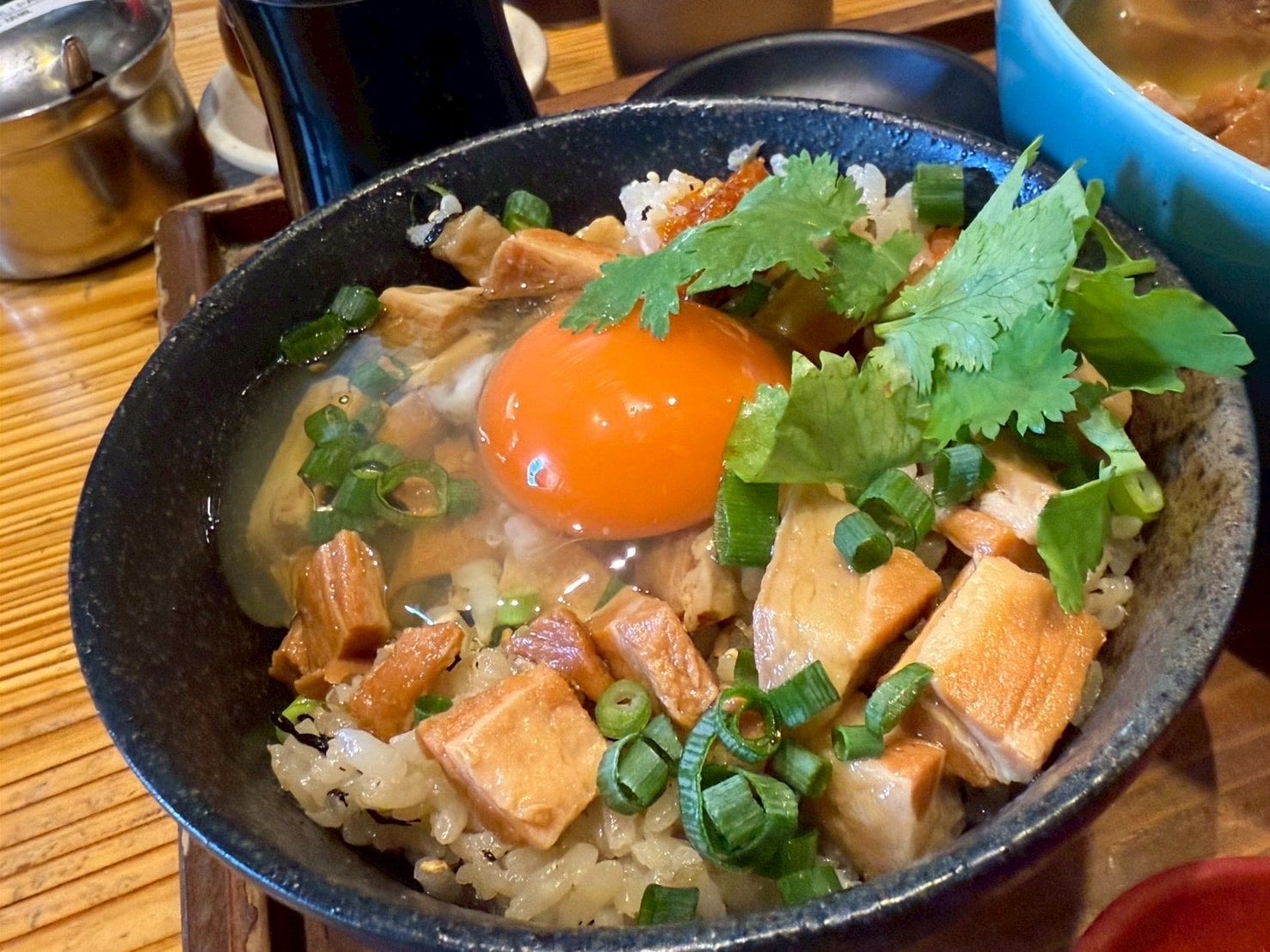 BUNBUNそばと卵がけジューシーをいただきました。スープもお肉もとっても美味しく息子たちが幸せそうに食べていました。本当に美味しかった。生卵がかかっているジューシーは初めてでどんな味がするんだろうと一口食べてみるとこれまたよく卵とジューシーが絡み合ってとても美味しかったです。また是非食べたい!