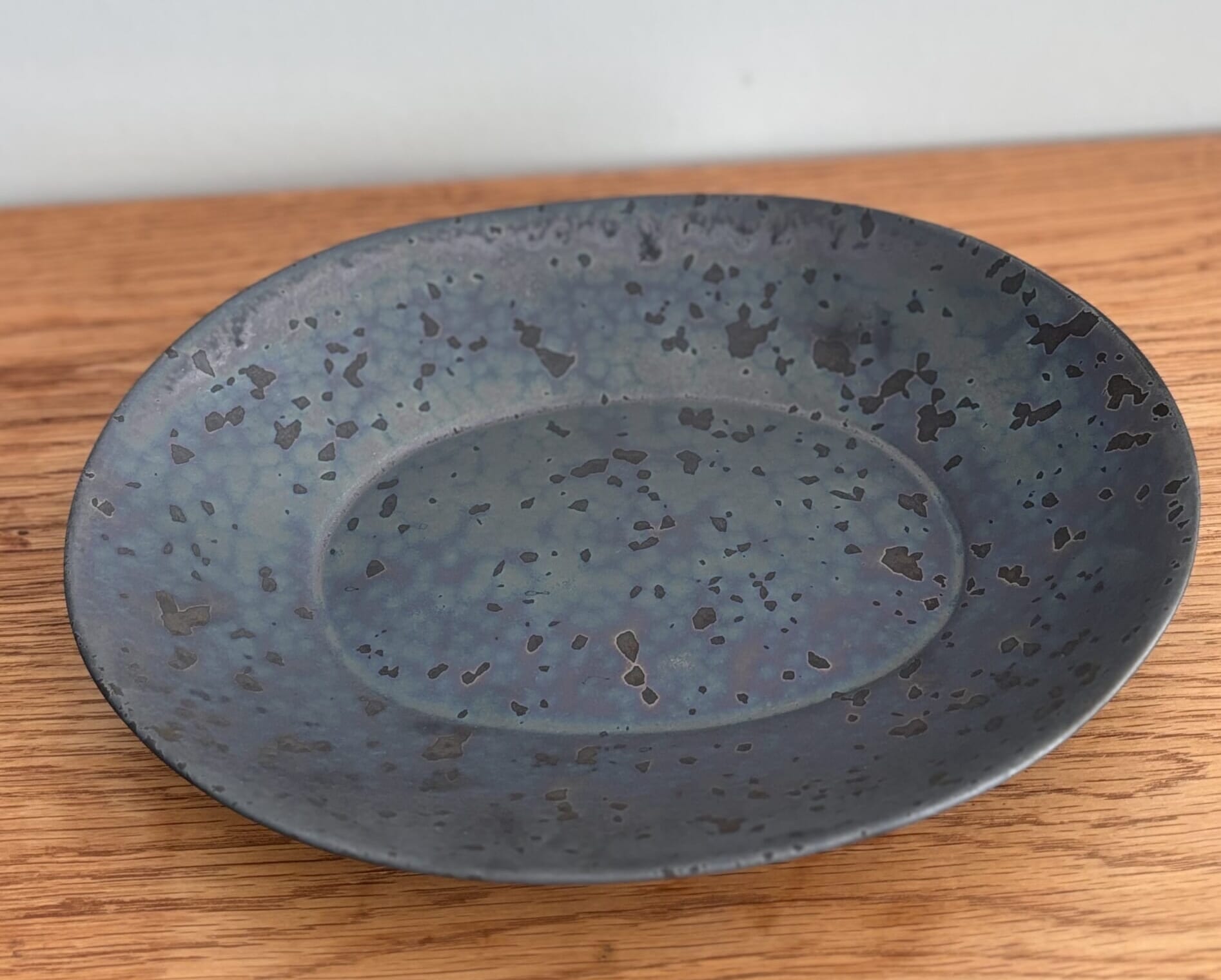 主人が選んだ鹿児島のONEKILNのオーバルプレート。桜島の火山灰が入っており個々に色味が違ってとて経年変化も楽しむことができます。