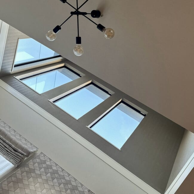 せっかく吹き抜けのある建売りを選んだのに、こんな風に朝からボーッと上を眺めたのは、なんだか久しぶりかも〜と、写真をパシャリ。(日光を浴びてセロトニンを意識的に生成!)