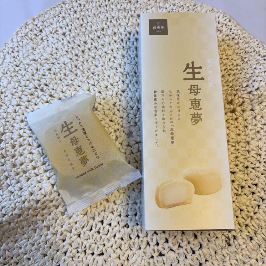 「生母恵夢」は、鳴門金時芋とバターを使った生地でアーモンドペーストと黄身を加えた餡を包んだ、生地と餡の一体感のあるお菓子とのことです。