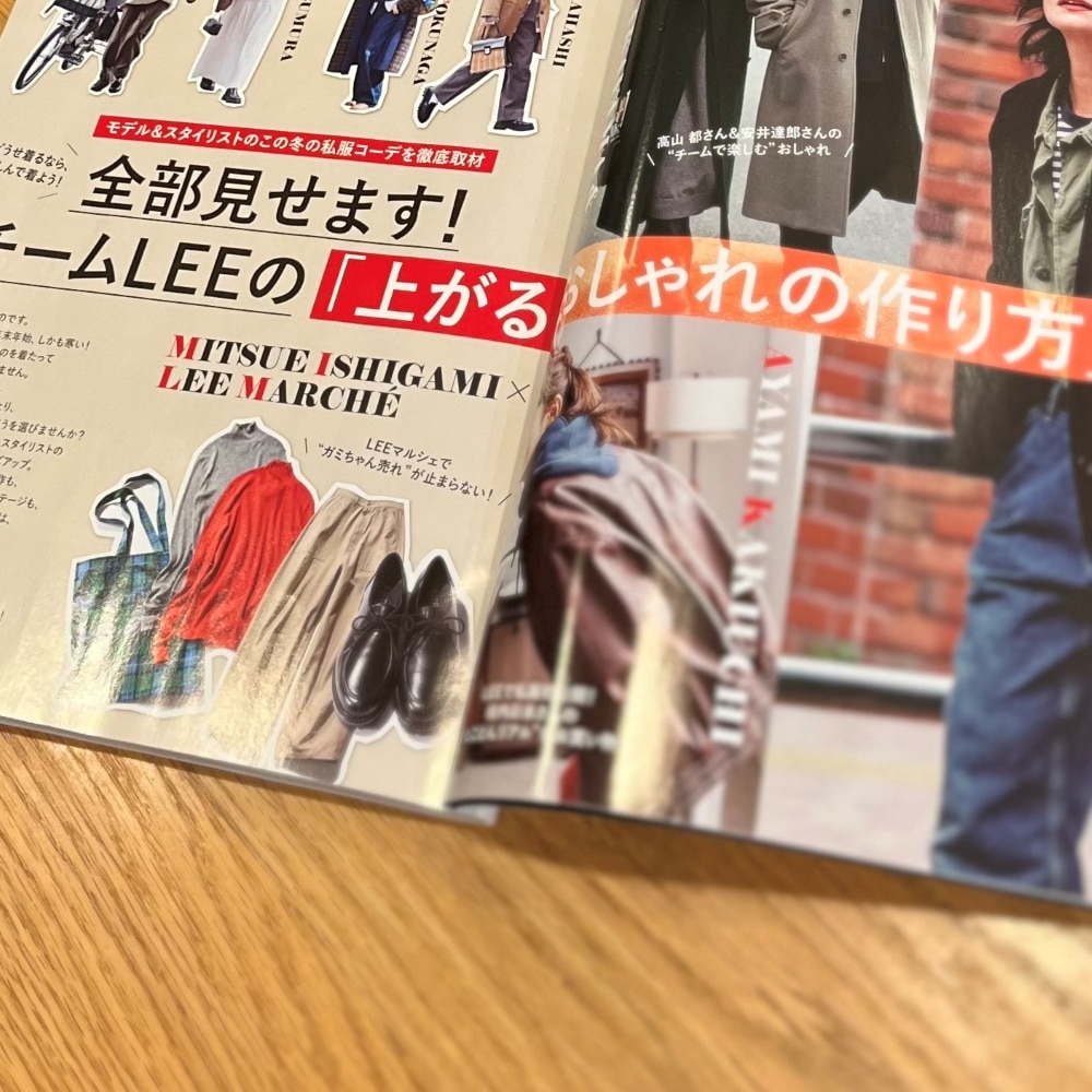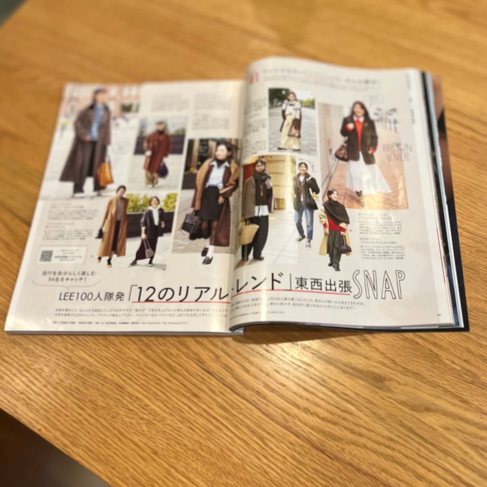 1・2月合併号の「LEE100人隊発『12のリアルトレンド』東西出張SNAP」(P44~)では、私も「もこもこアウターコーデ」で参加させていただきました♪(P50掲載です!)