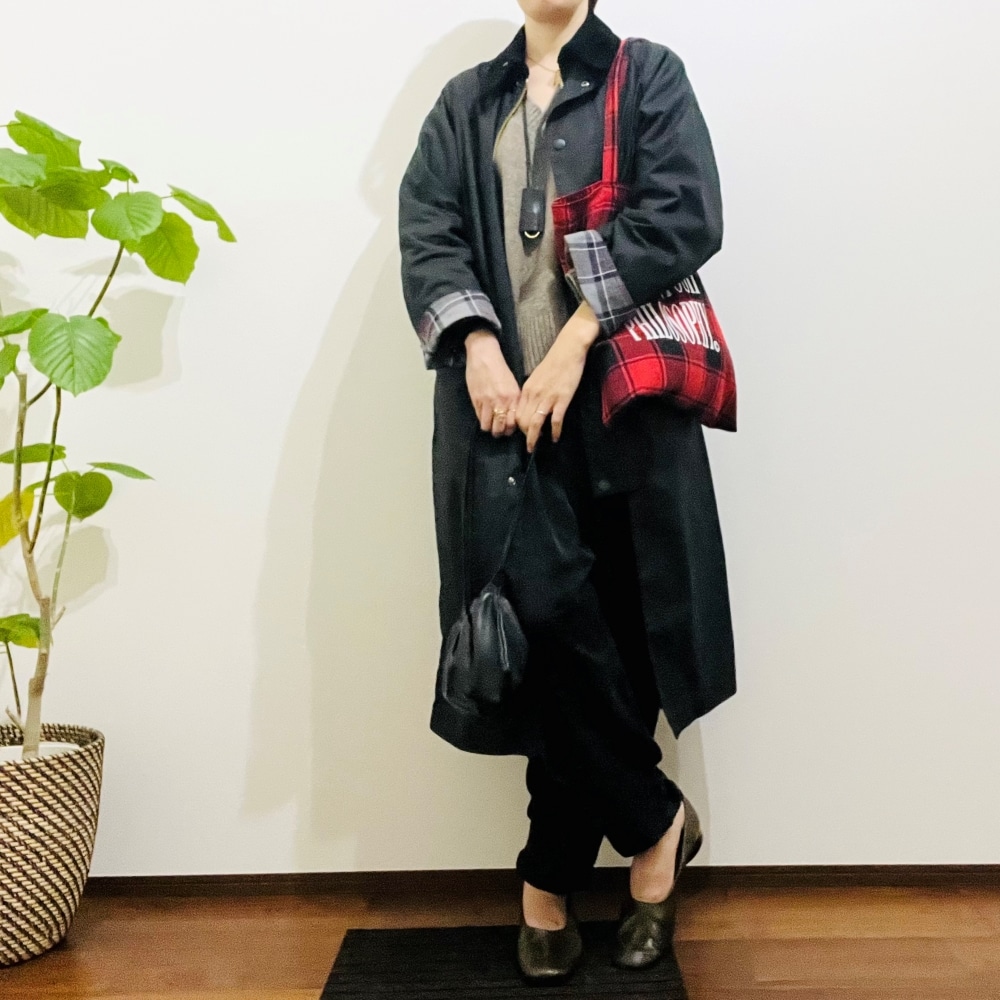 チェックの中に黒が入っているので、地味色コーデが多い私にも馴染みがよく、メインとしてもサブバッグとしてもよく手に取っています。