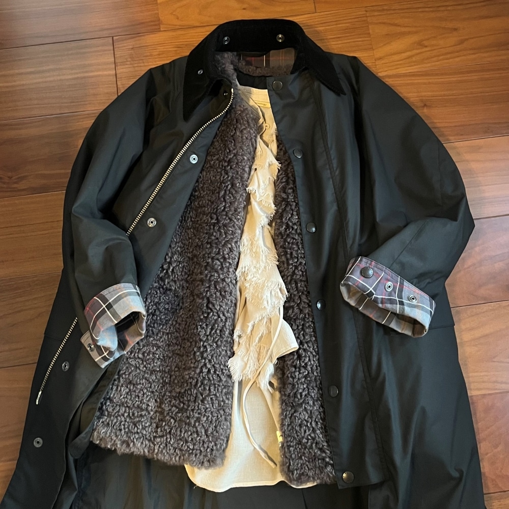 バブアーのアウターの袖の折り返しとチェック柄をリンクさせるのもお気に入り!