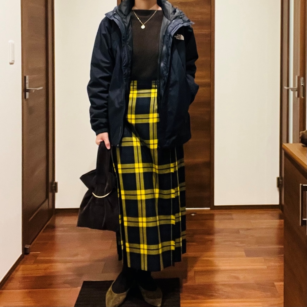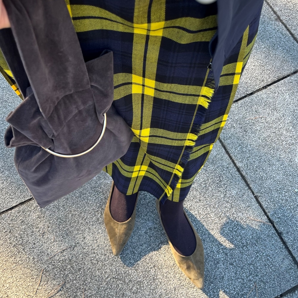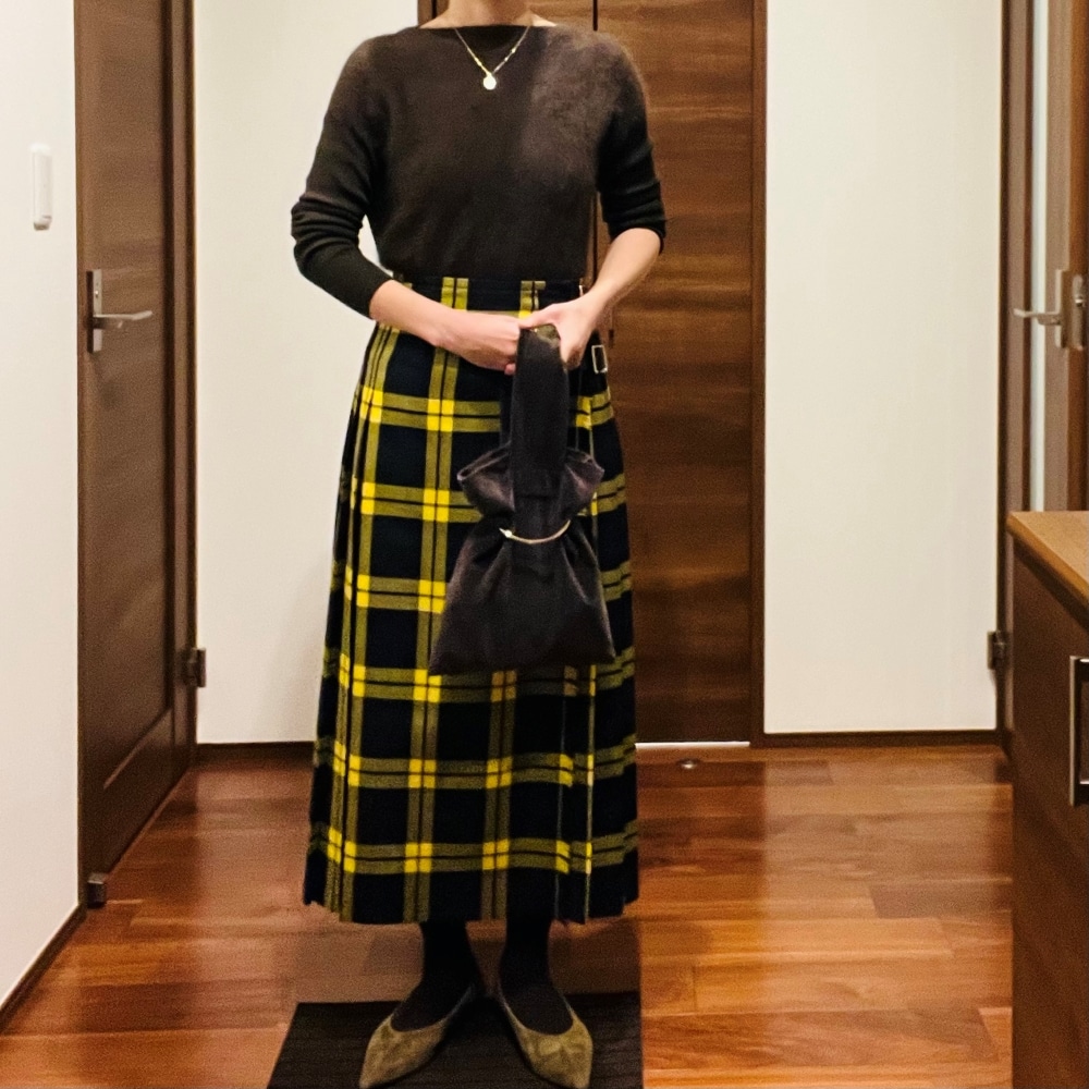 選んだのは、ウーステッドウールのロングキルトスカート、イエローとネイビーのチェックです♪
