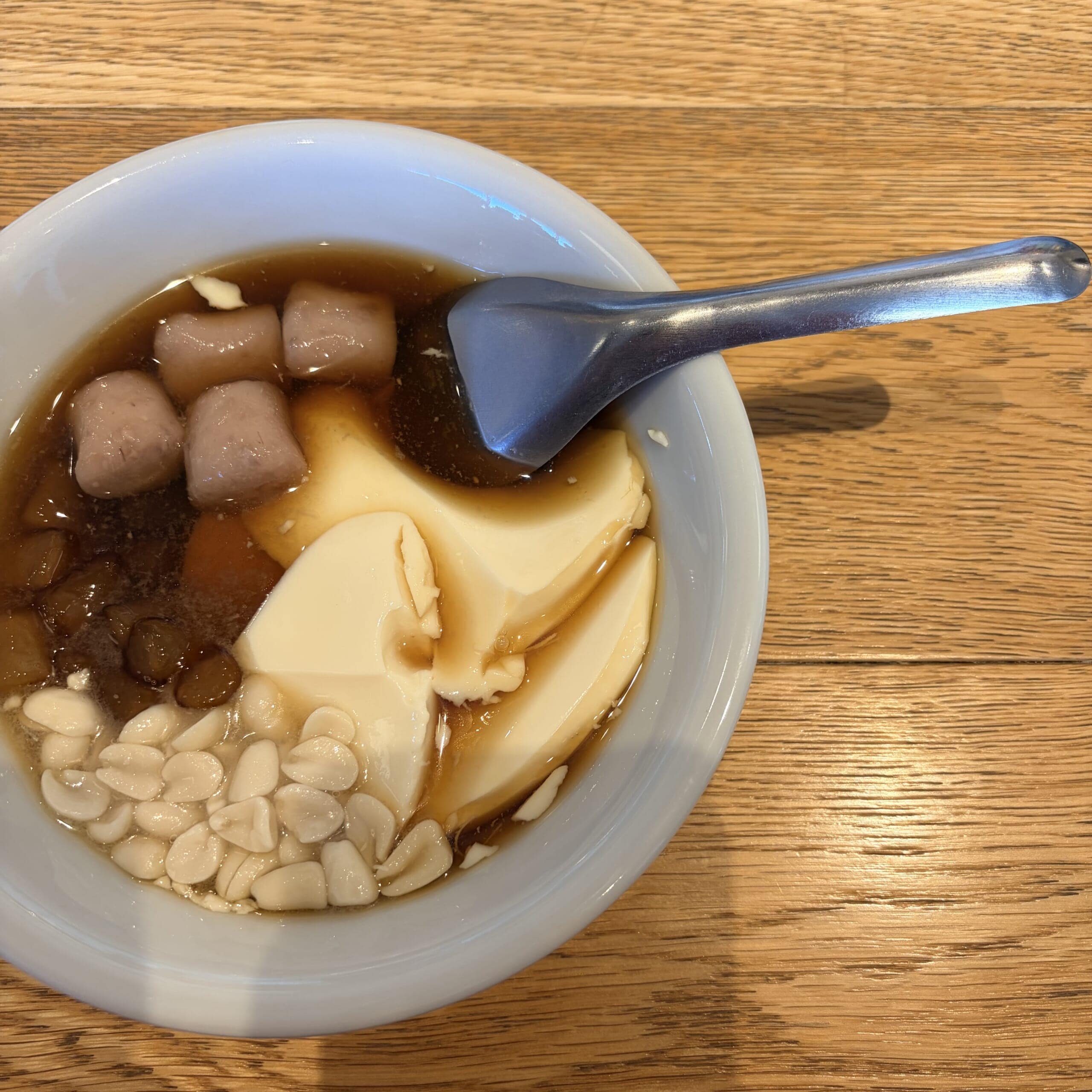 そして隣のお店、山海豆花(サンハイドウファ)さんでデザートを注文。気軽にそのお店の得意料理をハシゴできるなんて、至福の極みです。